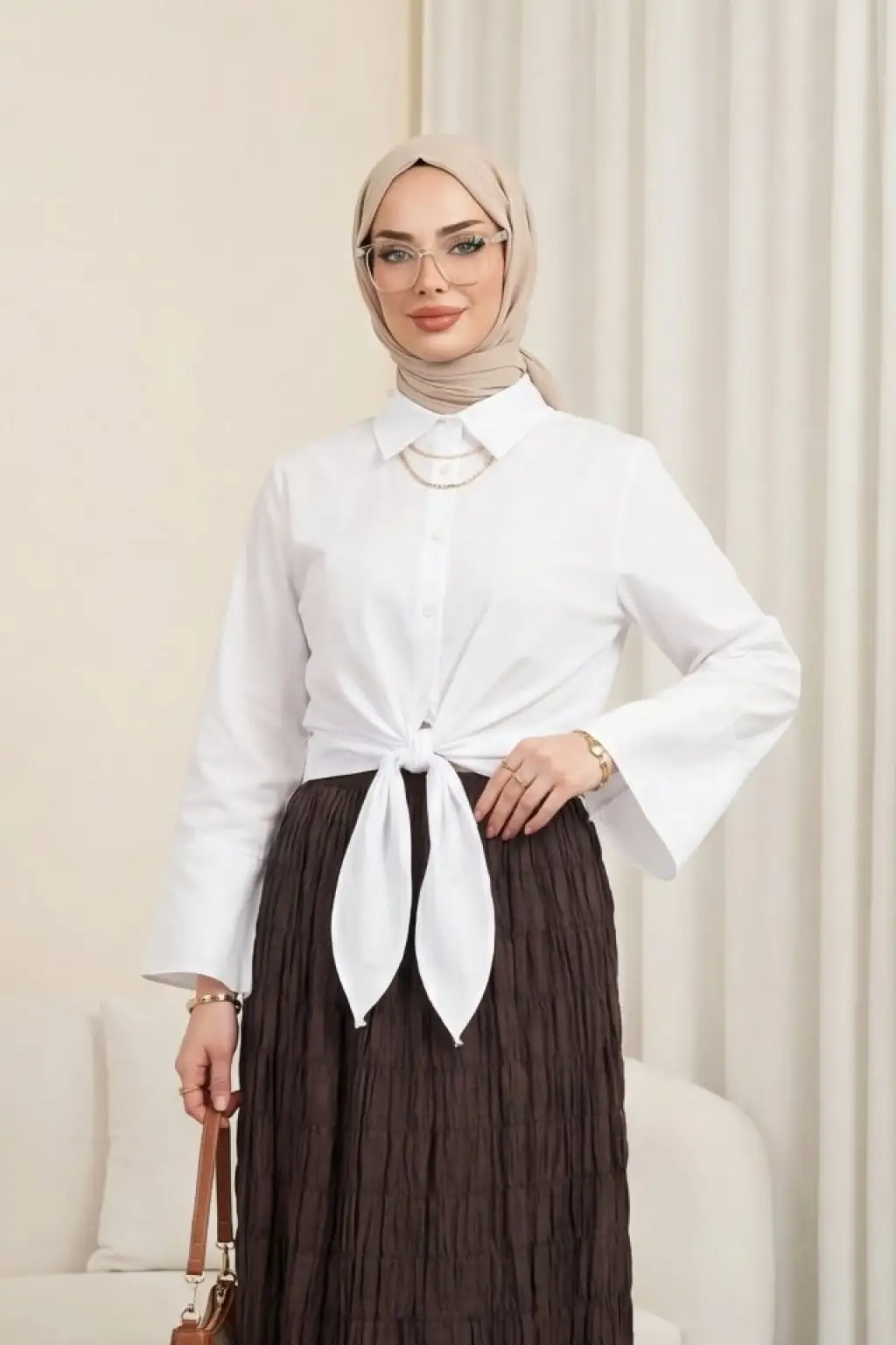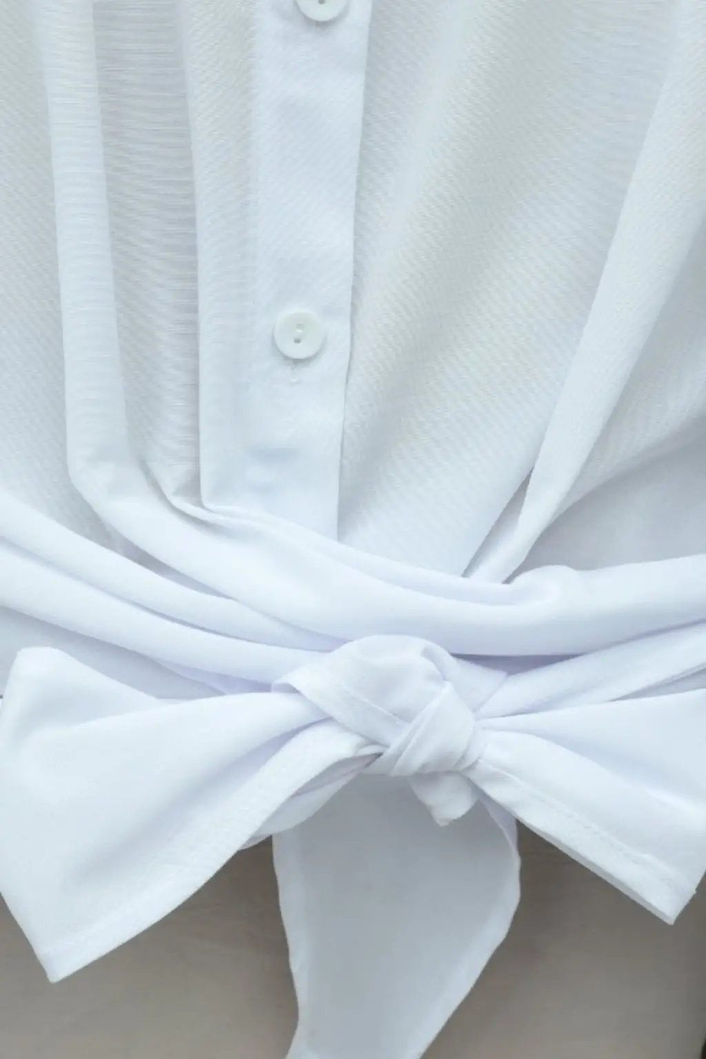 Beli Bağlamalı İspanyol Kol Poplin Gömlek Bluz -Beyaz