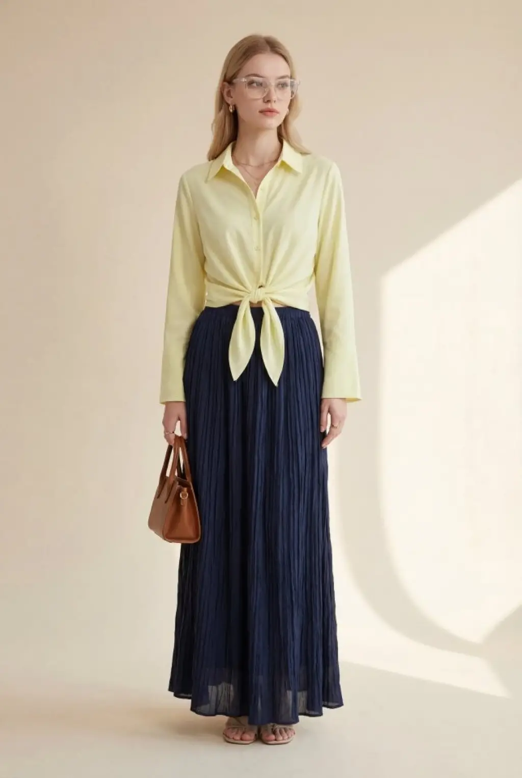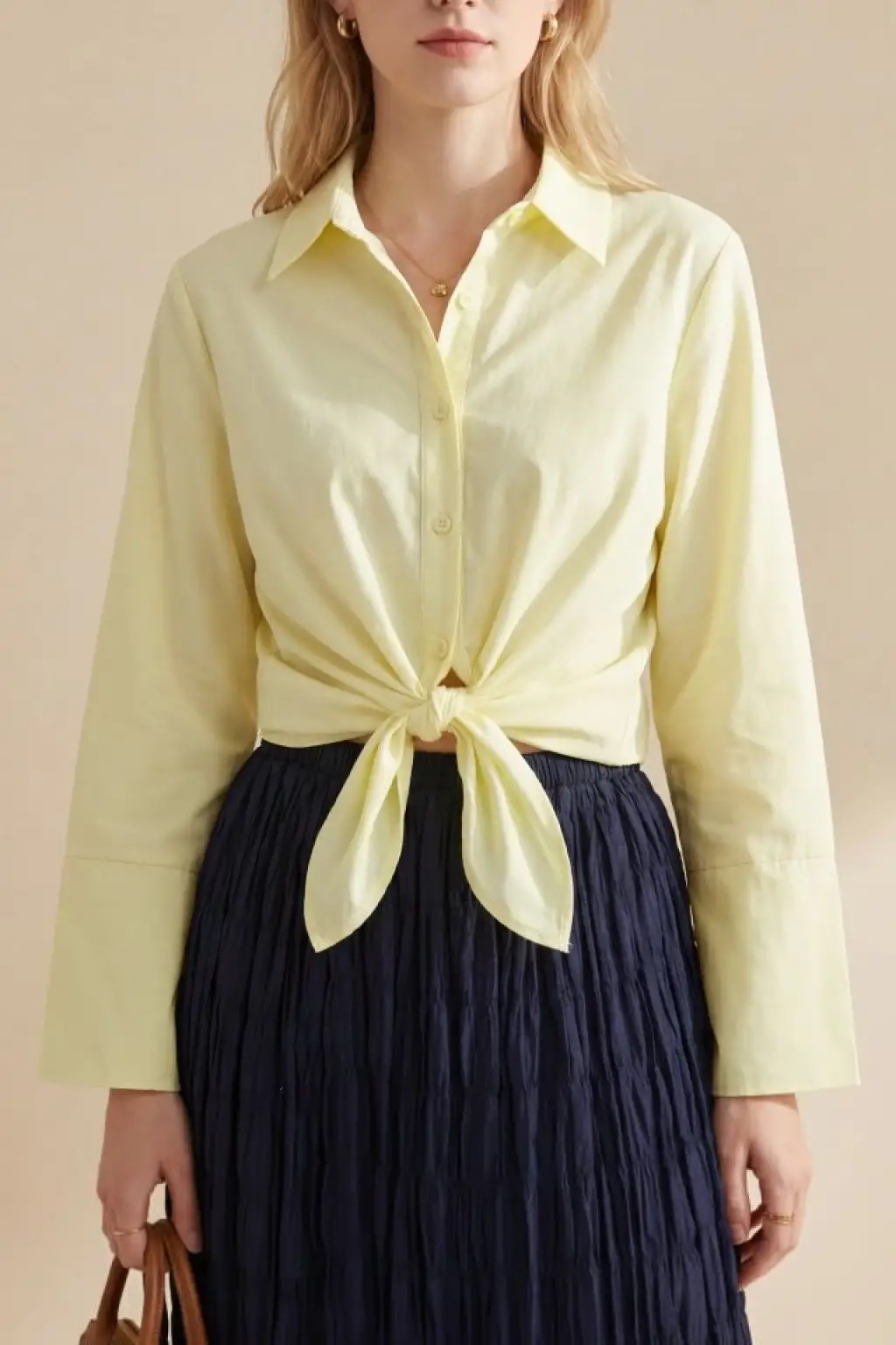 Beli Bağlamalı İspanyol Kol Poplin Gömlek Bluz -Sarı