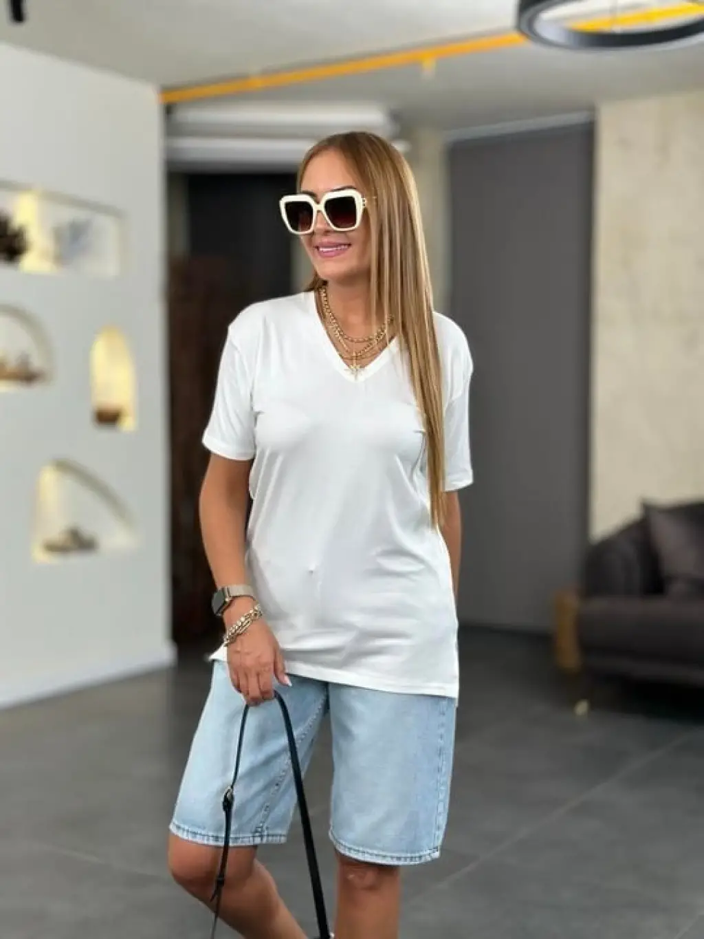Kadın Kısa Kollu V Yaka Bluz
