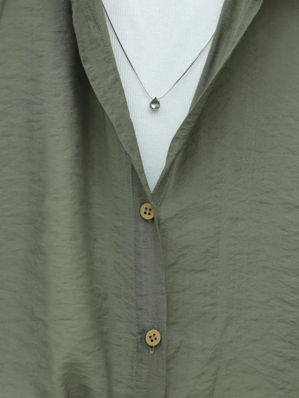 Crop Badyli Kolyeli Arkası Uzun Gömlek -Haki
