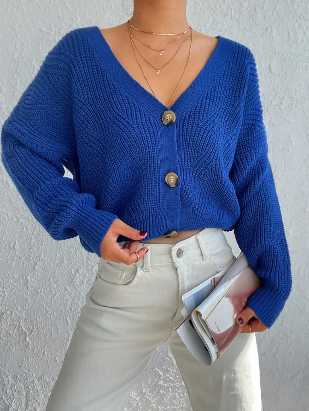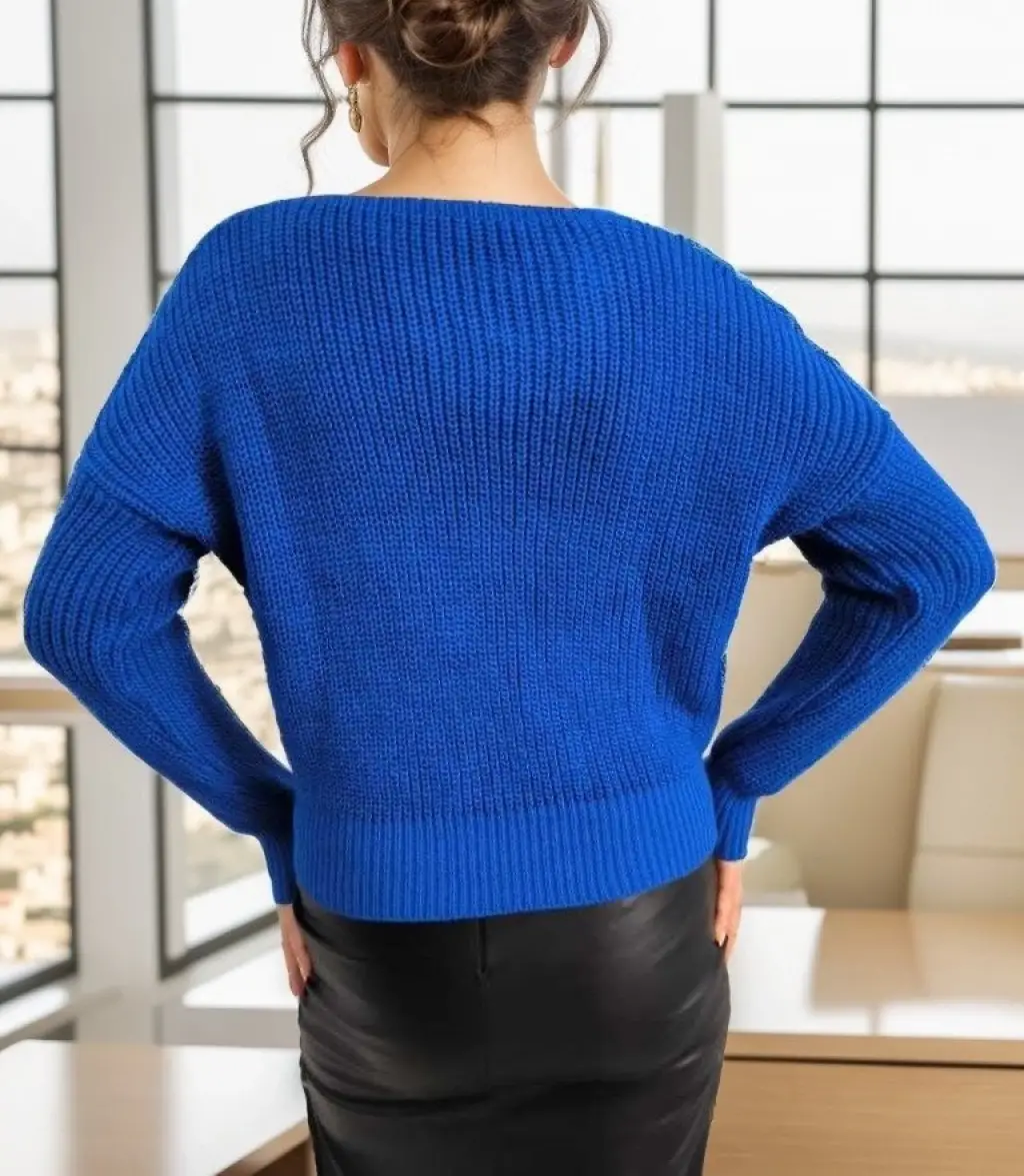 Kadın Uzun Kollu Düğme Detay Triko Hırka