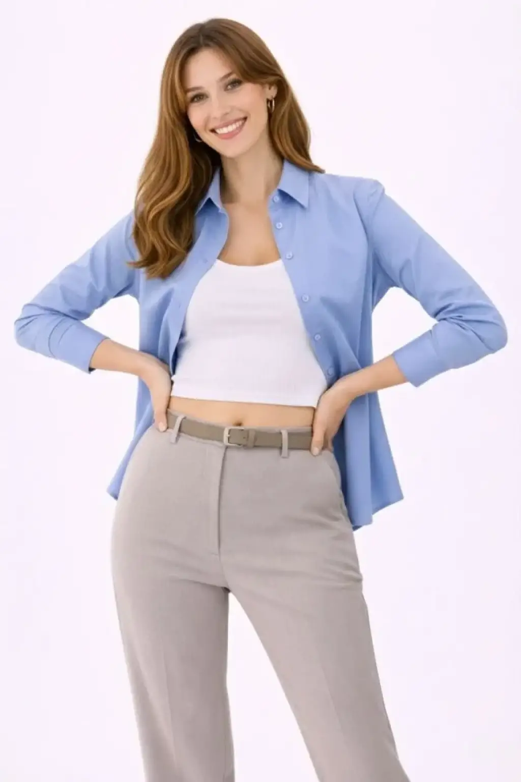 Uzun Kollu Gömlek Düğmeli Klasik Yaka Günlük Ve Ofis Şıklığına Uygun - Mavi