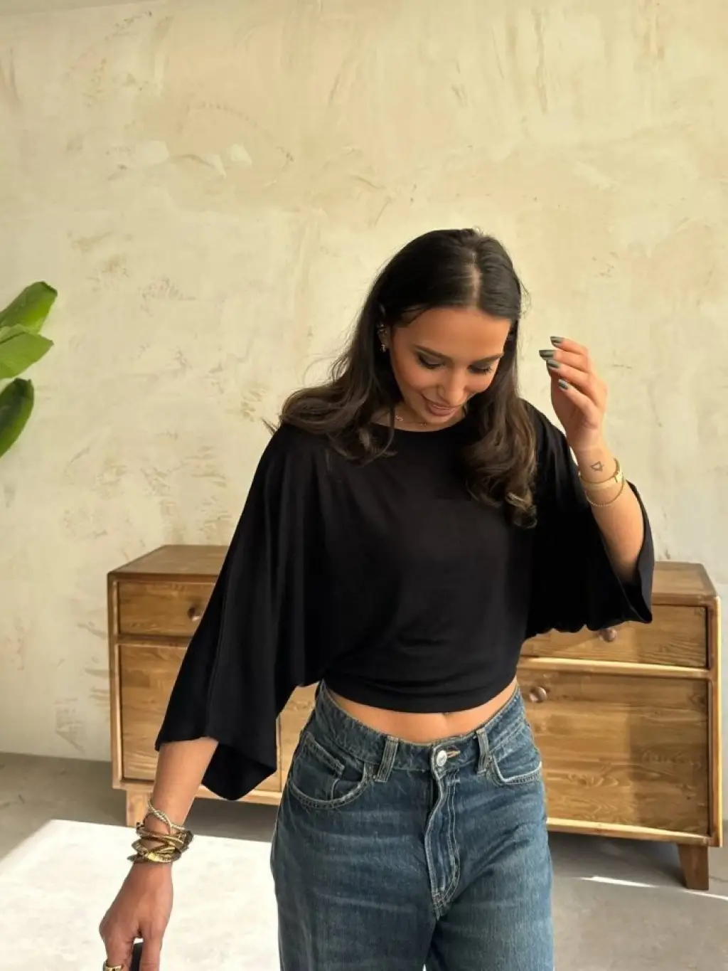 Kadın Kayık Yaka Yarasa Kol Dökümlü Kısa Bluz