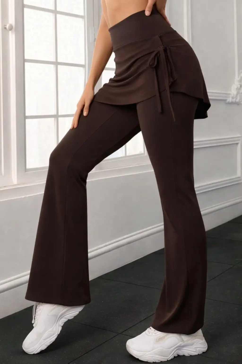 Kadın Yüksek Belli Yandan Büzgülü Paçaya Doğru Geniş Dalgıç Tayt