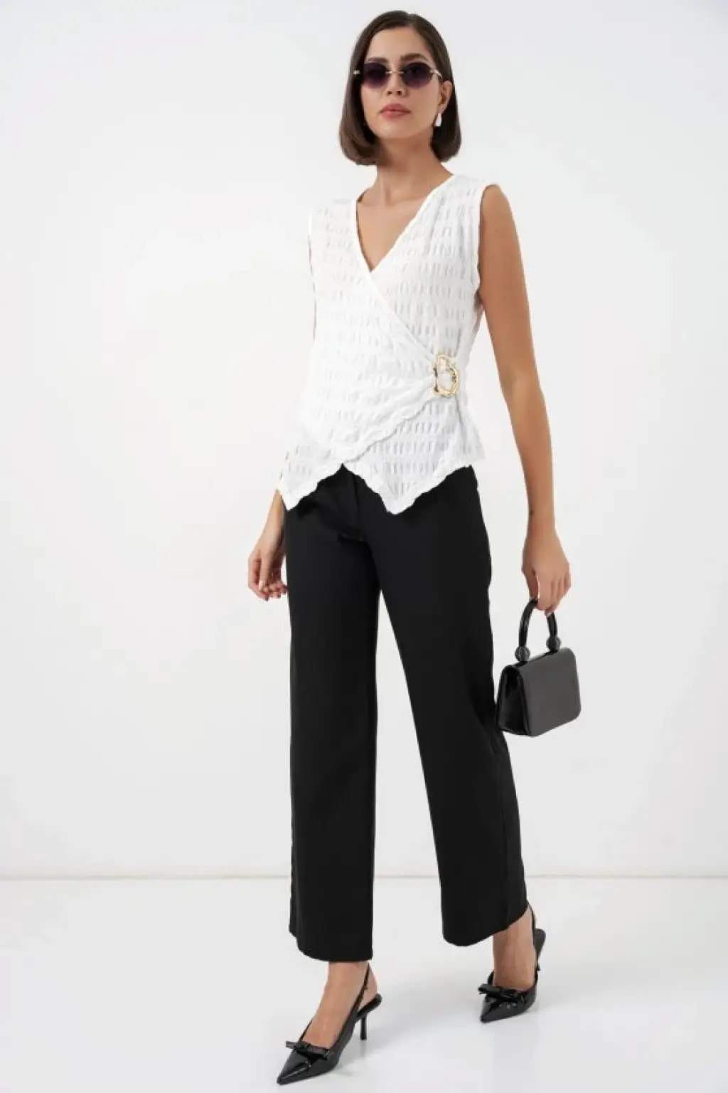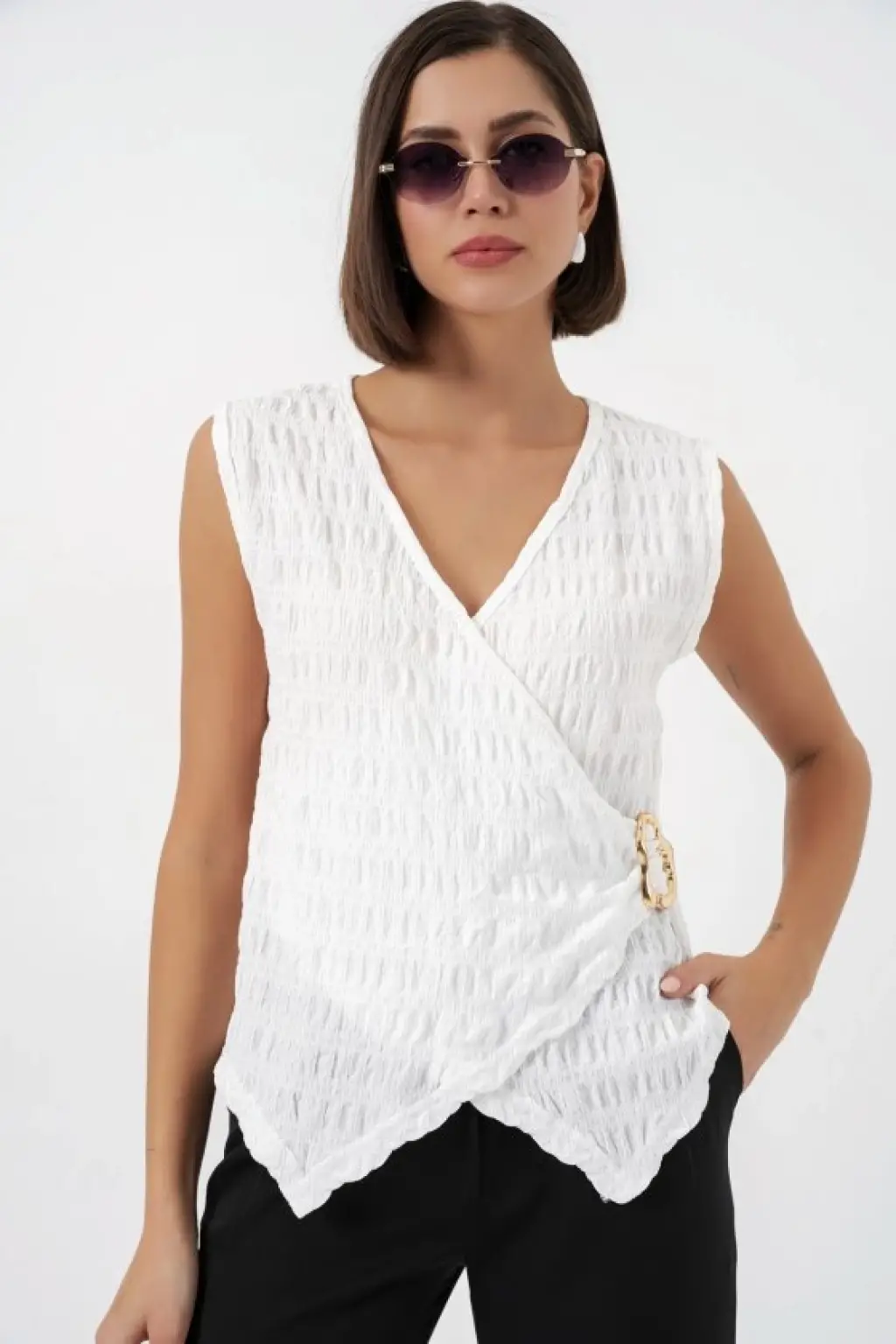 Sıfır Kol Örme Bluz 988 - Beyaz