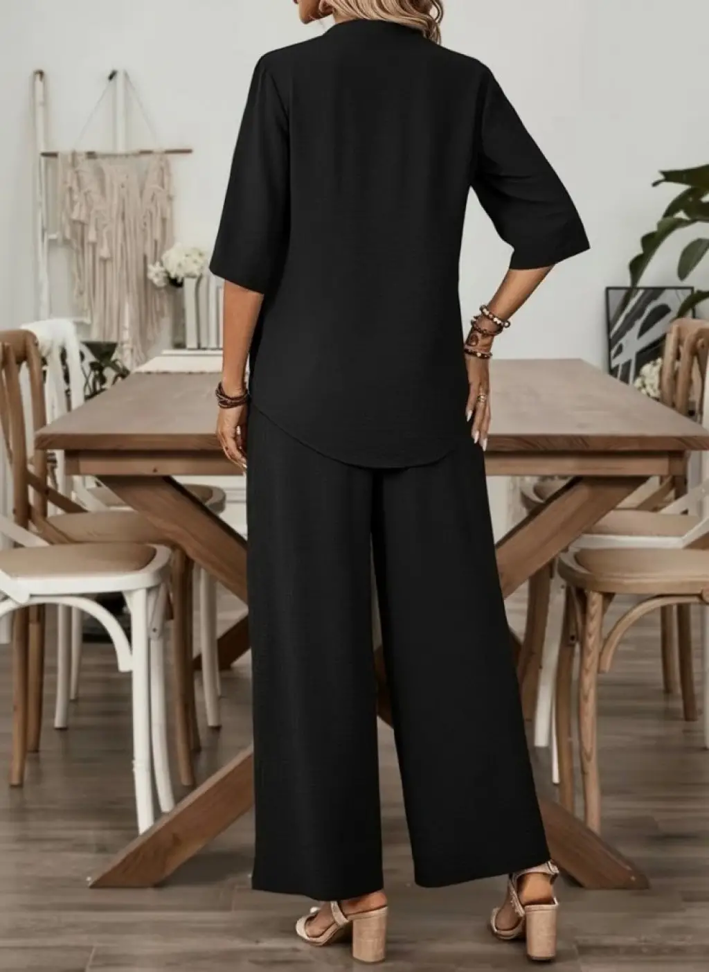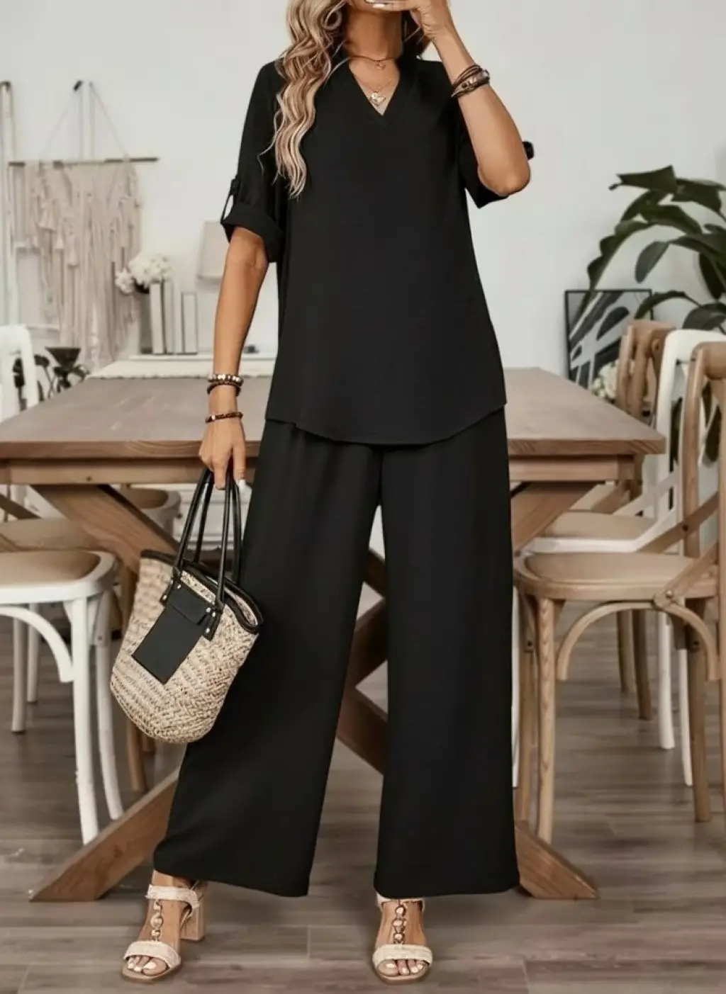Kadın Kısa Kollu Bisiklet Yakalı Tül şerit Detaylı Bluz Ve Pantolon Ikili Takım
