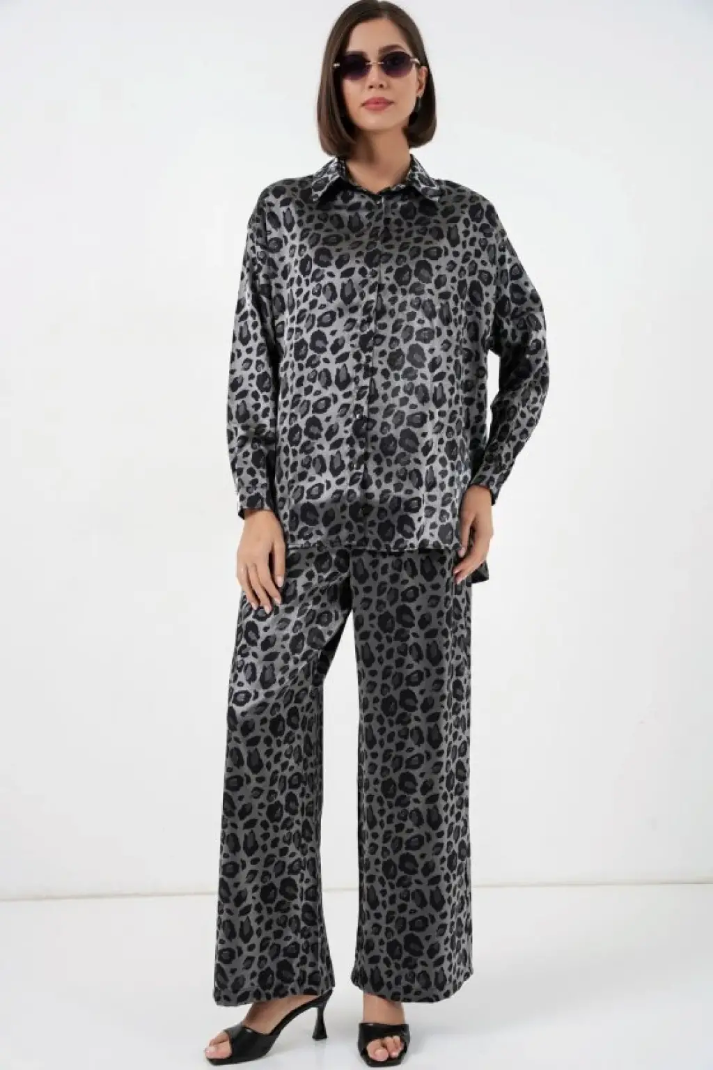 6699 Leopar Desenli Alt Üst Takım - Antrasit