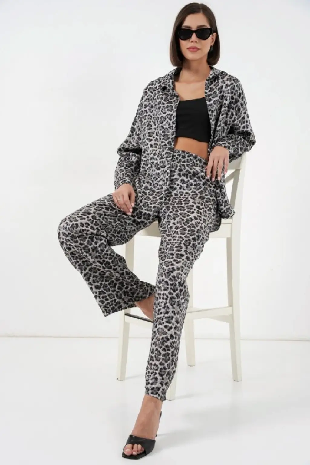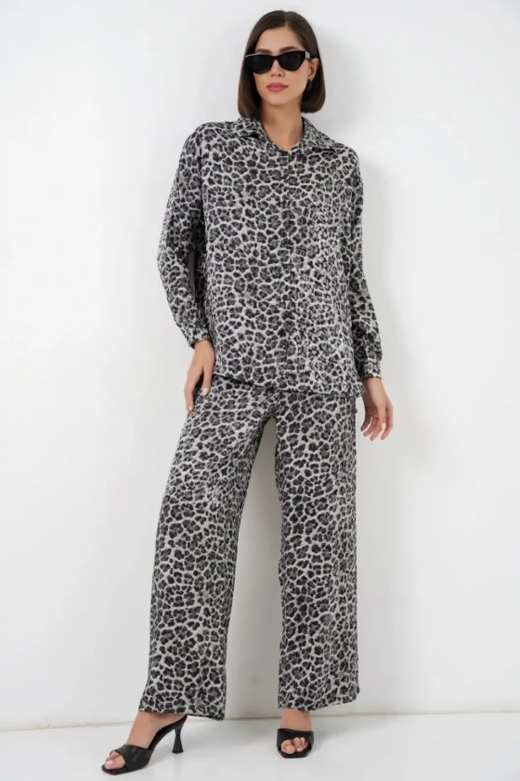 6699 Leopar Desenli Alt Üst Takım - Gri