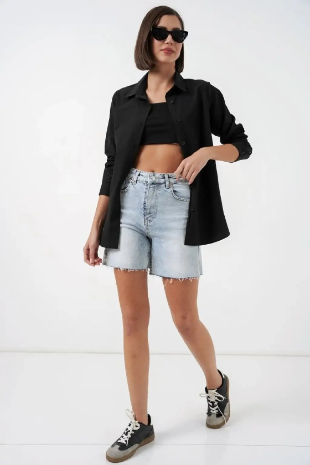 Düğme Detaylı Sandy Bluz 992 - Siyah