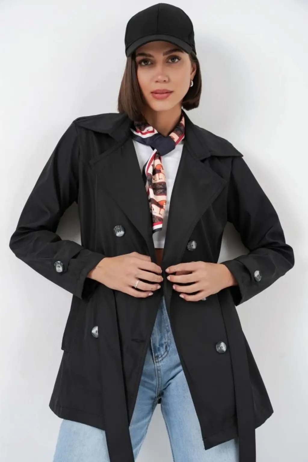 Kuşaklı Kısa Trençkot 5982 - Siyah