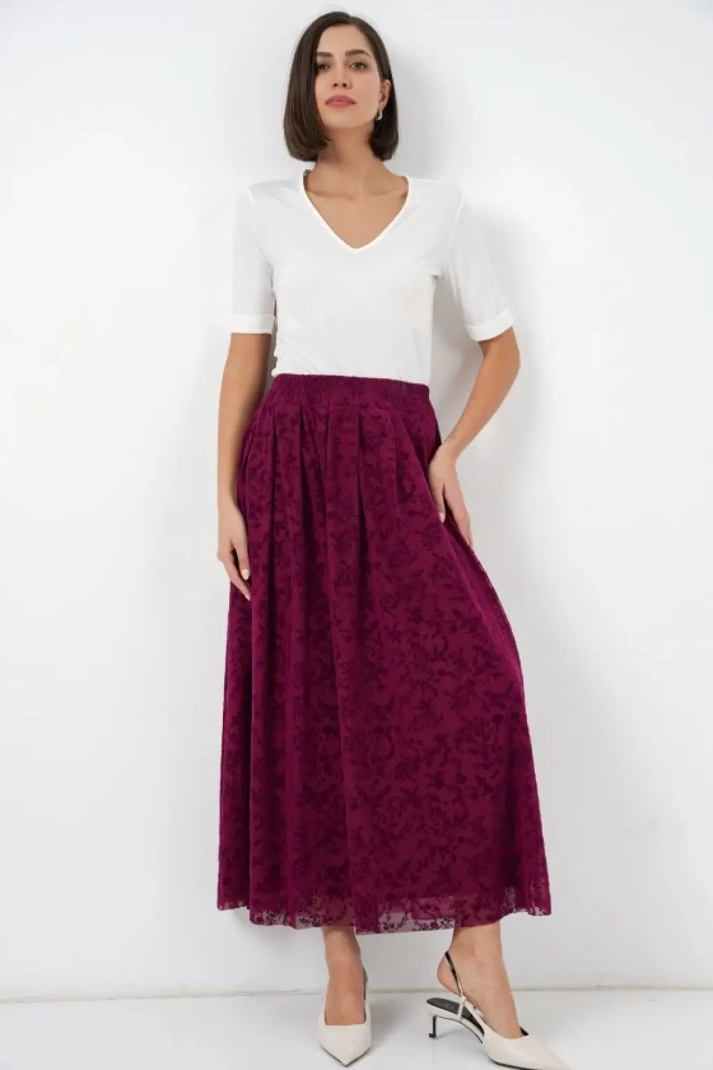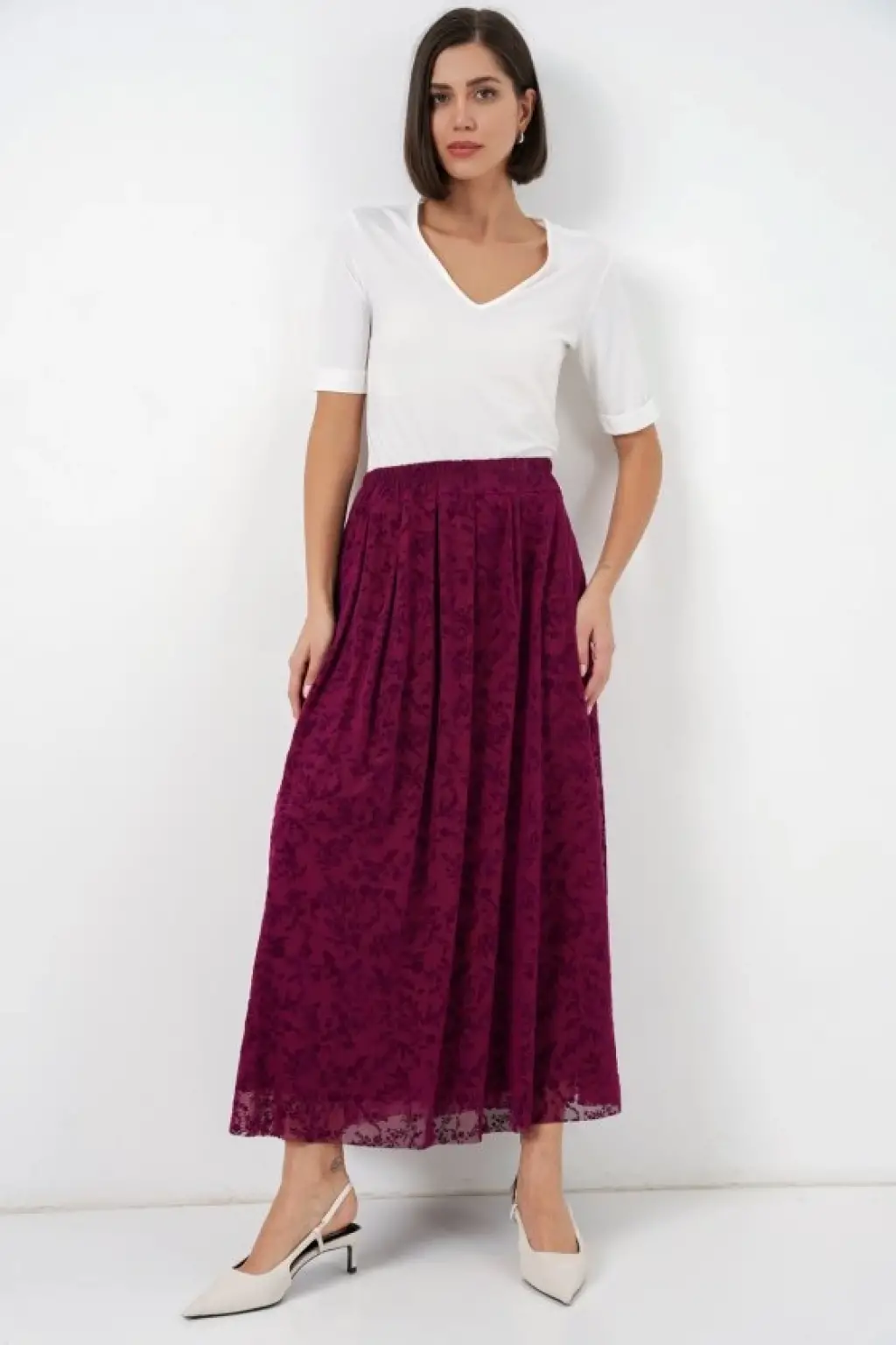Flok Baskılı Astarlı Etek 8069 - Mürdüm