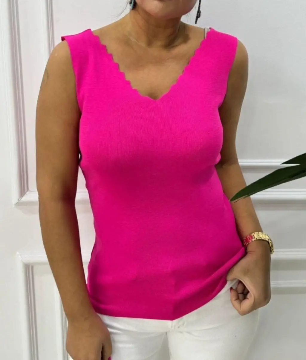 Kadın Omuz Askılı V Yaka Lazer Kesim Kaşkorse Kumaş Atlet