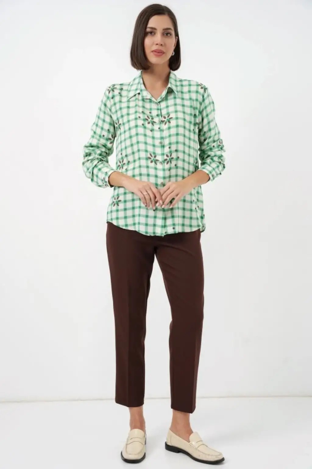 Oversize Desenli Gömlek 20372 - Kahverengi