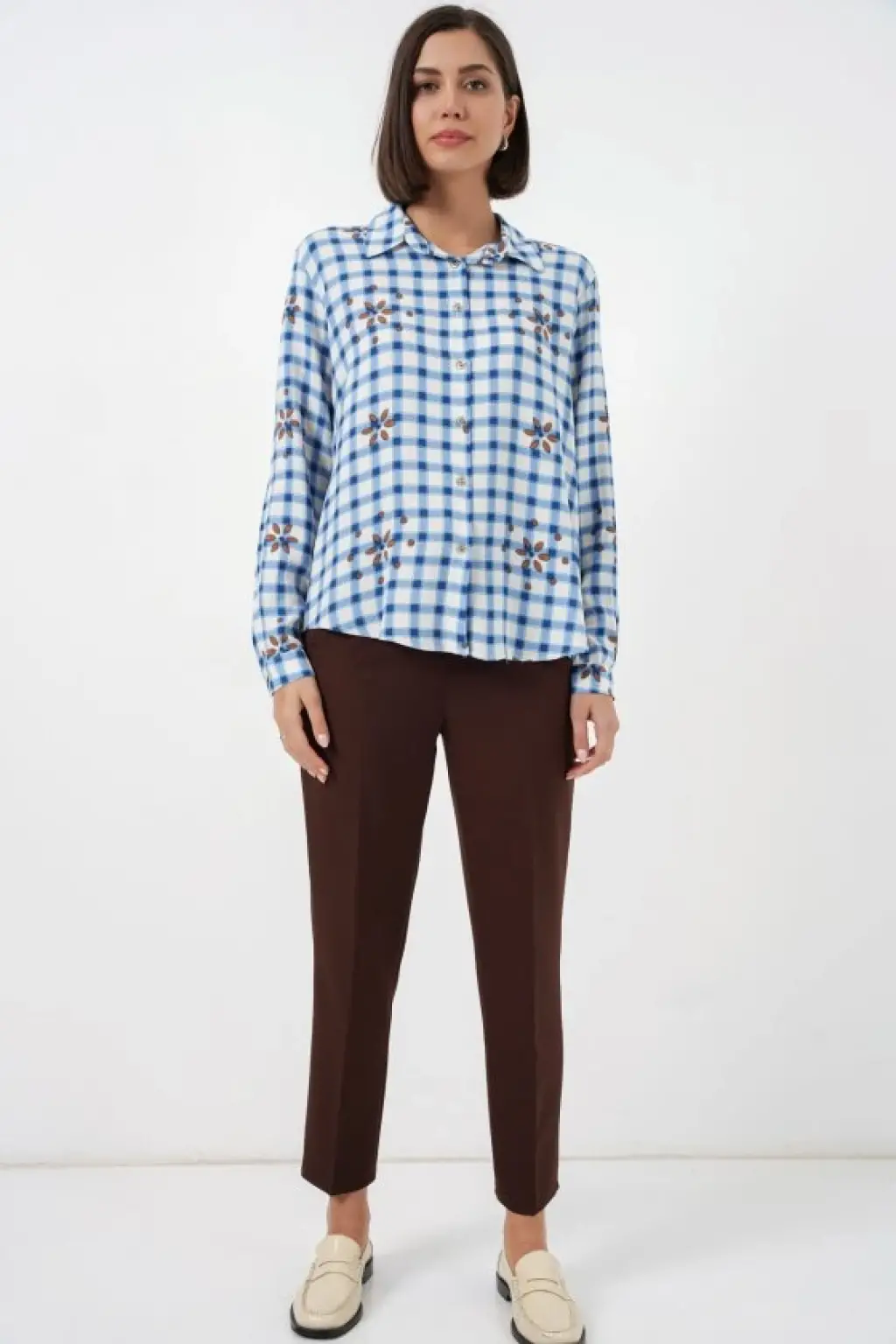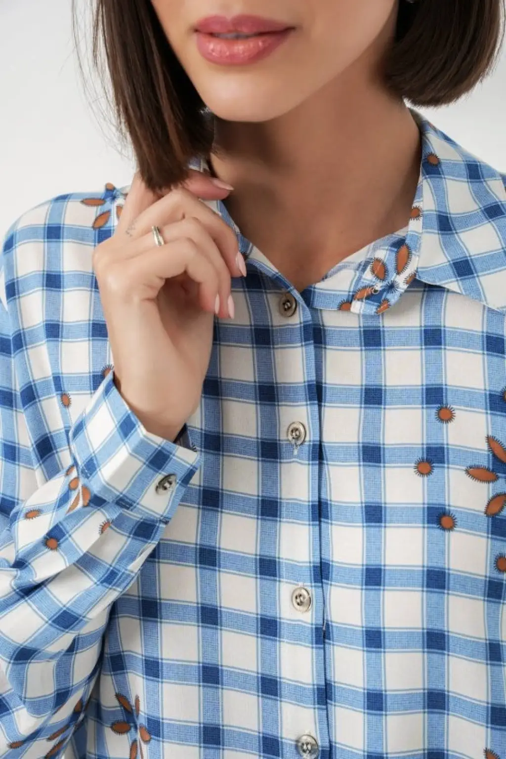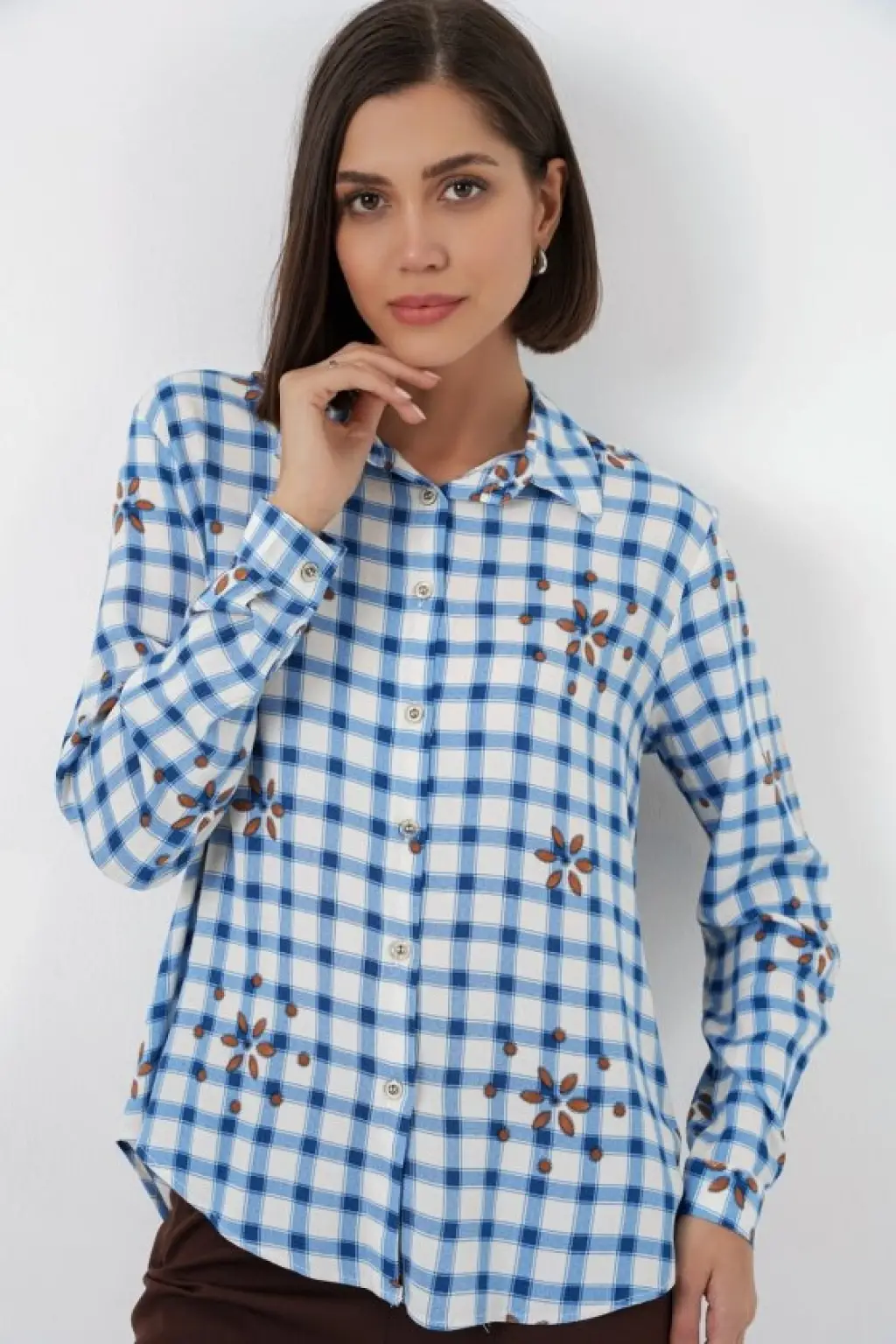 Desenli Oversize Viskon Gömlek 20371 - Mavi