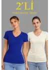 3lü V Yaka Tişört – Kısa Kollu Yazlık Slim Fit Body - Pembe, Açık Mavi, Ekru