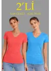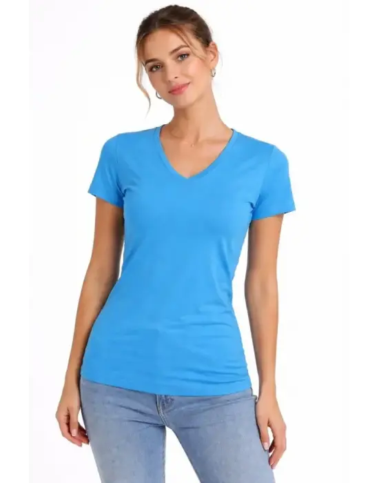 3lü V Yaka Tişört – Kısa Kollu Yazlık Slim Fit Body - Pembe, Açık Mavi, Ekru