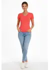 3lü V Yaka Tişört – Kısa Kollu Yazlık Slim Fit Body - Toz Pembe, Lacivert, Hardal