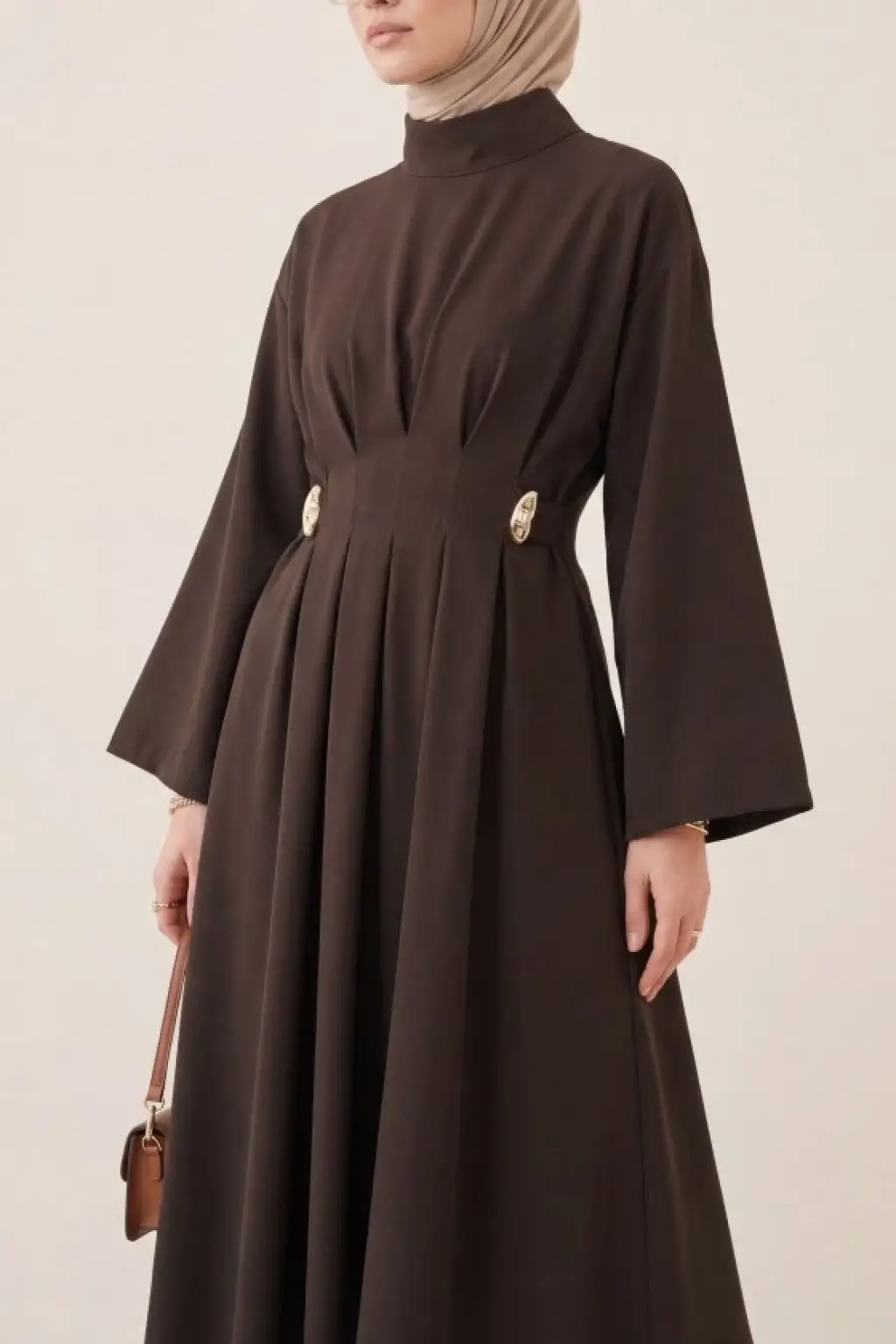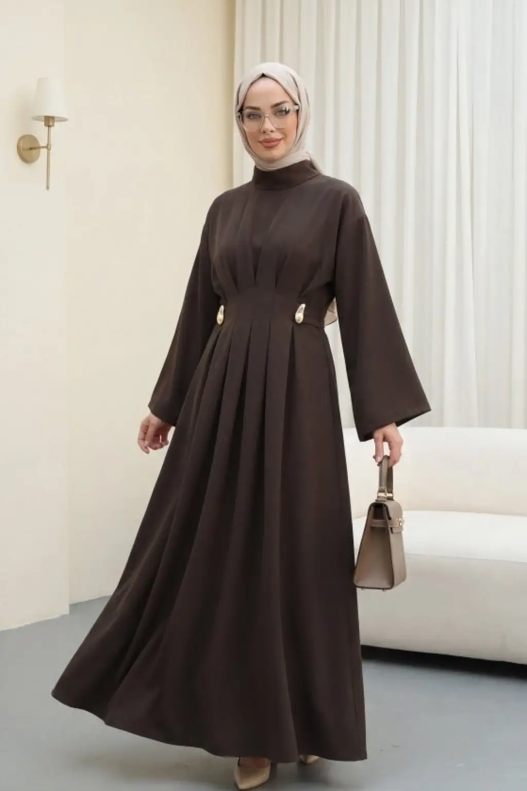 Pileli Beli Kemerli Toka Detaylı Modal Elbise -Bordo