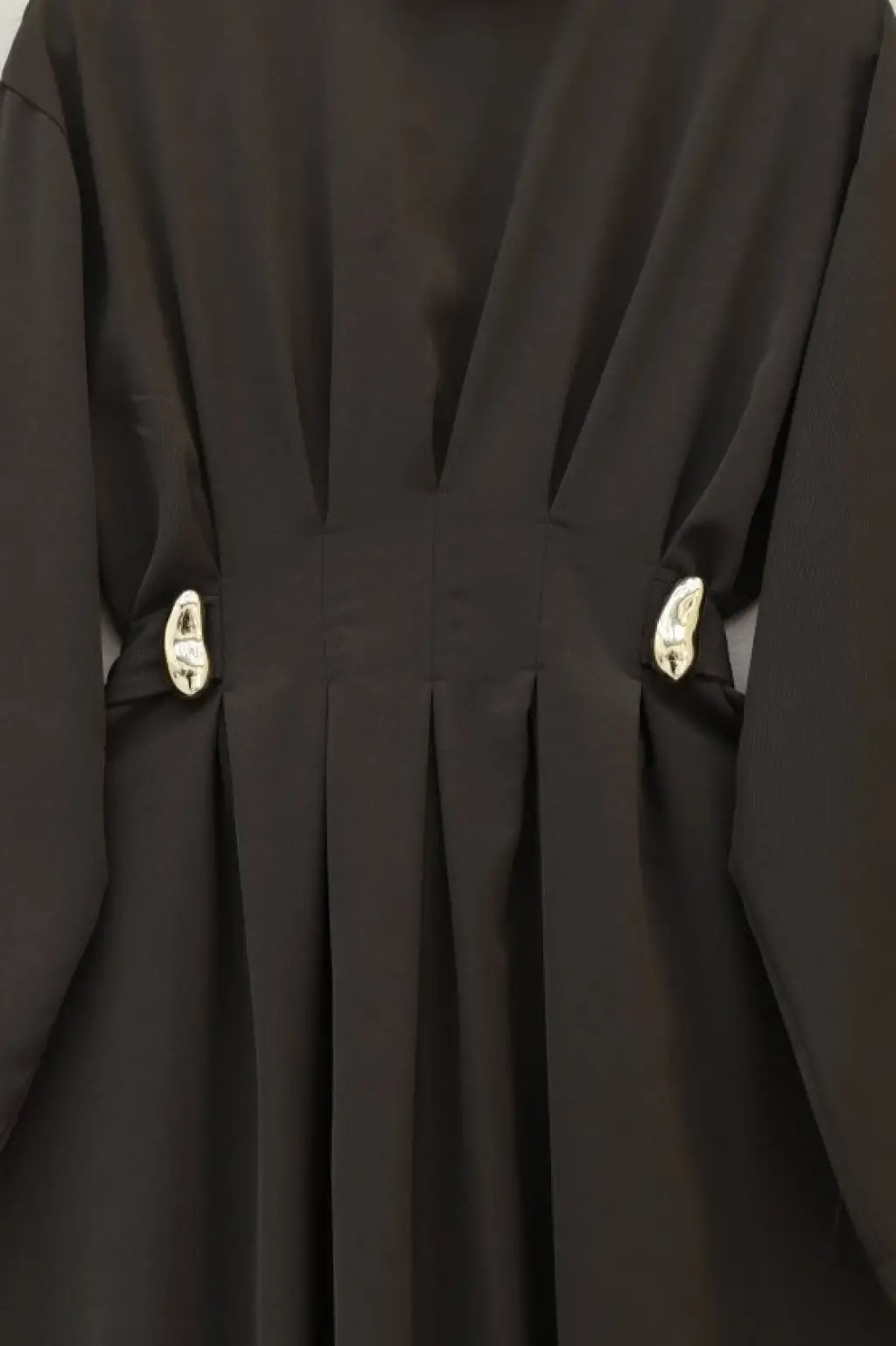 V Yaka Düğmeli Arkası Uzun Gömlek -Kahve