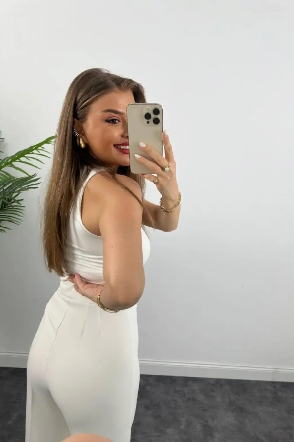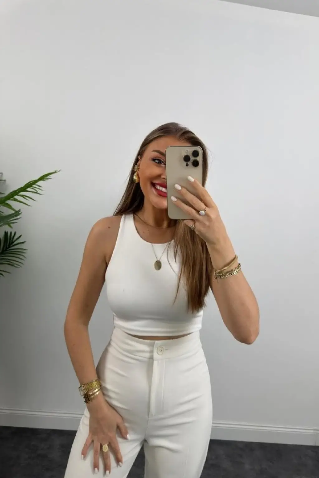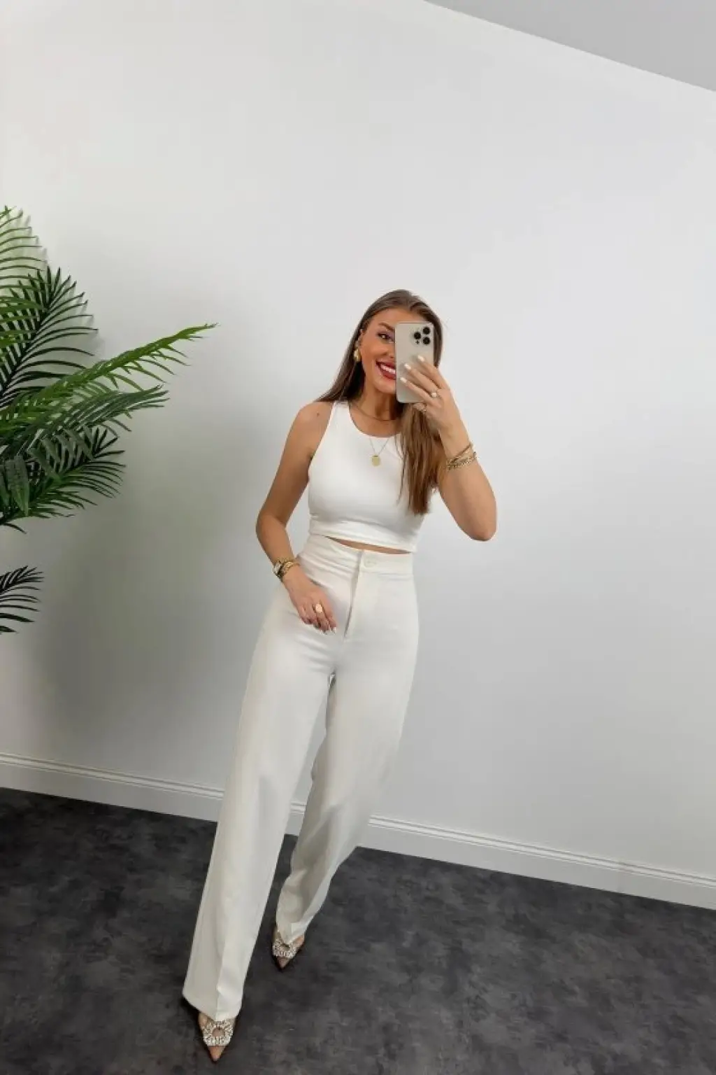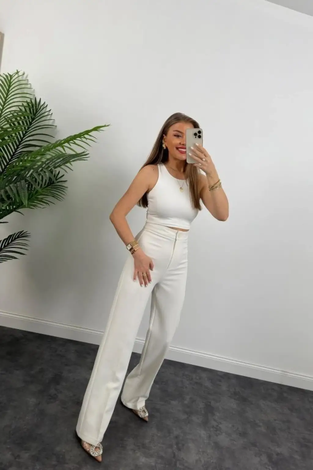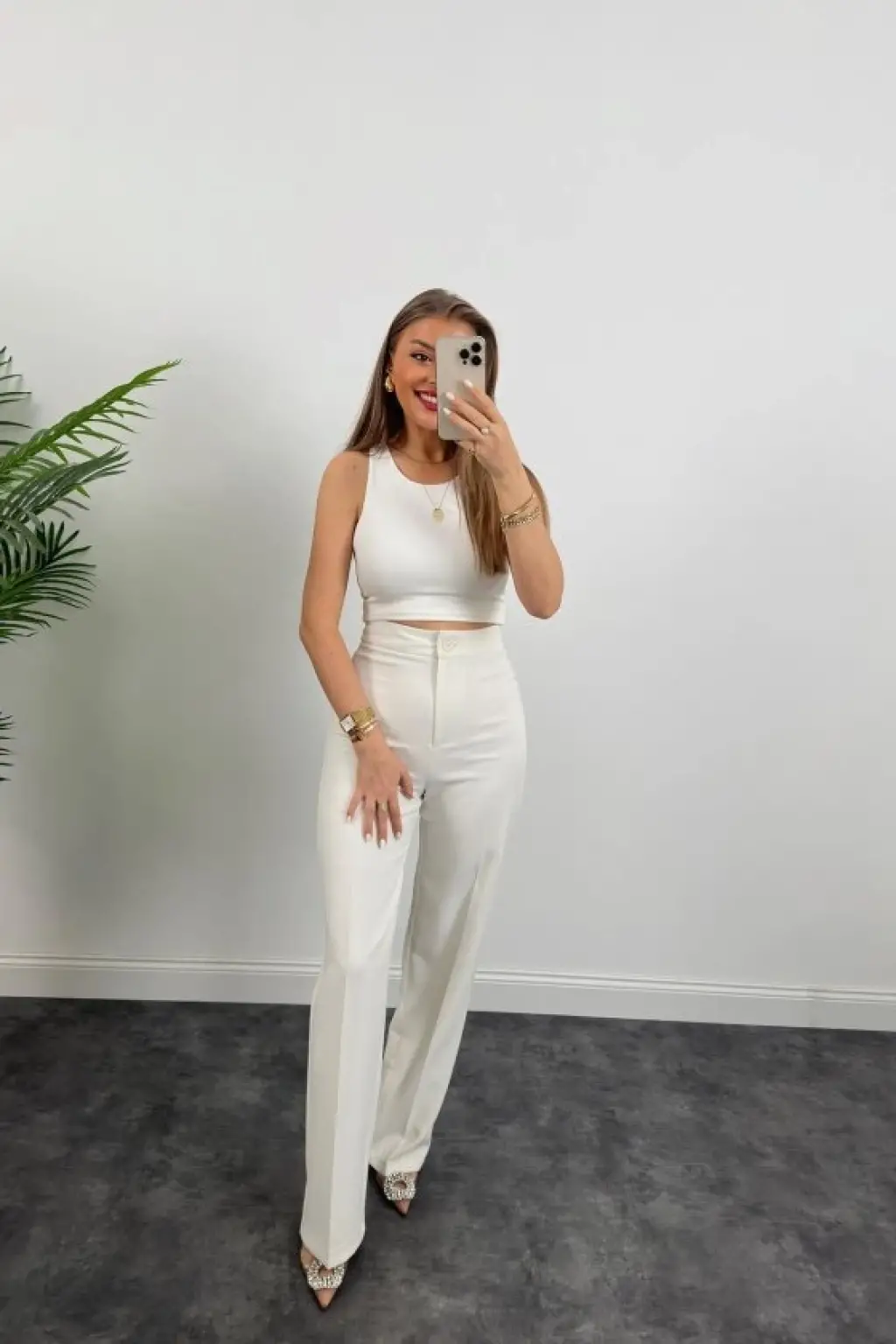 Kadın Kolsuz önü Düğmeli Yelek Ve Pantolon Ikili Takım