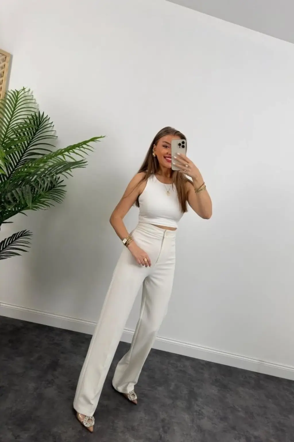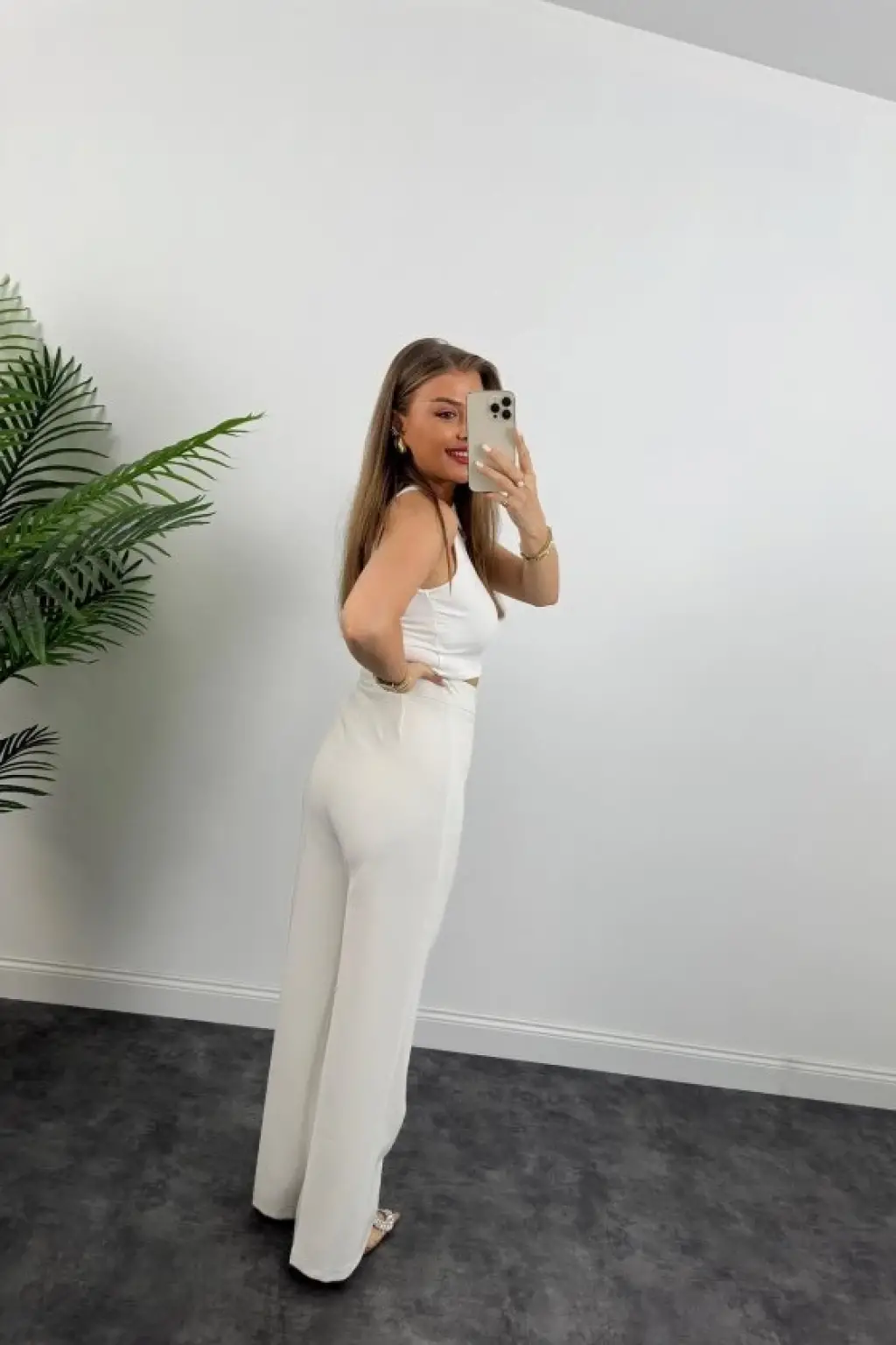 Kadın Yüksek Bel Atlas Kumaş Palazzo Pantolon