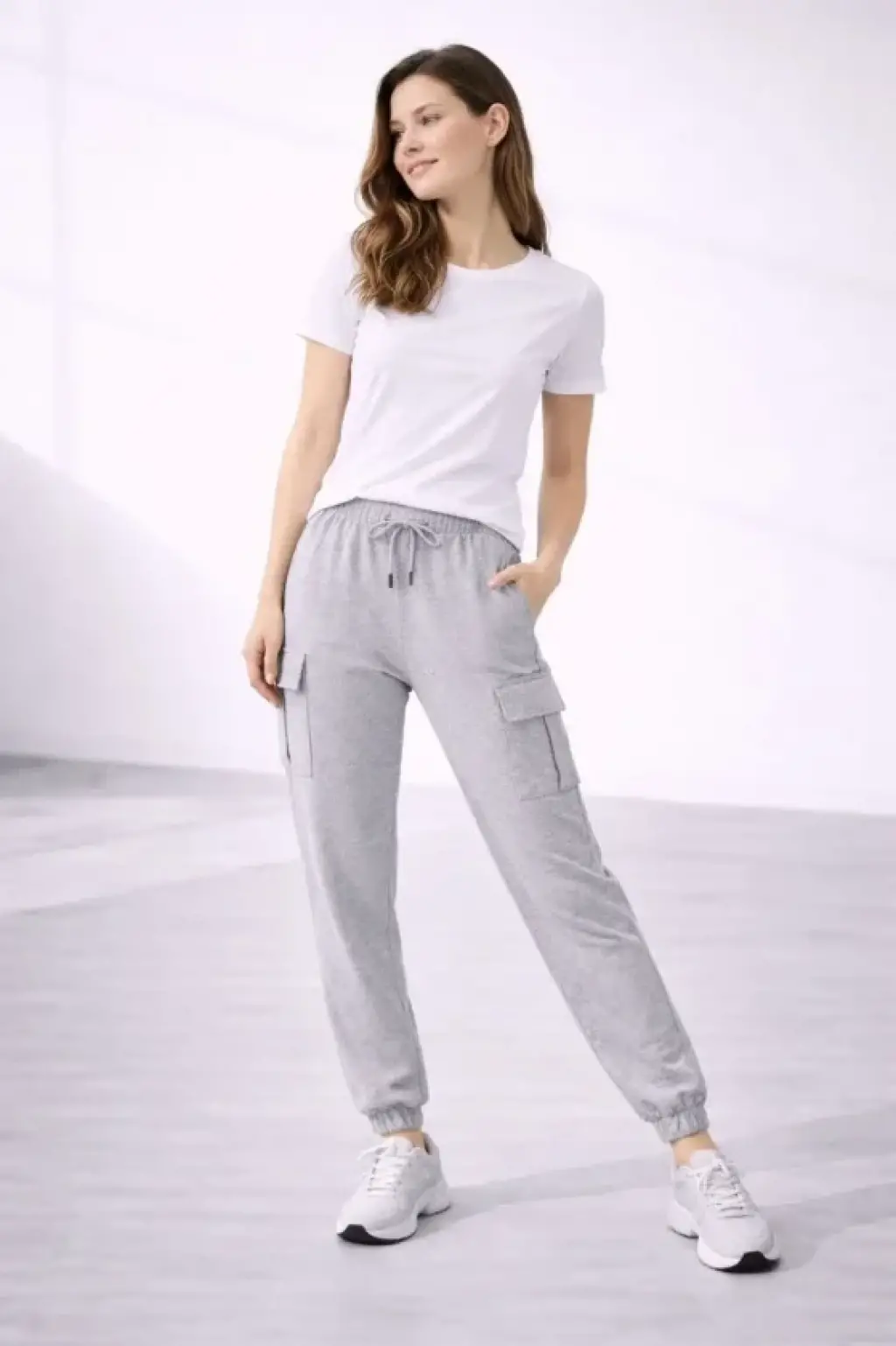 Jogger Eşofman Altı Rahat Kalıp, Kargo Cepli, Lastikli Paça, Günlük Spor Pantolon - Gri