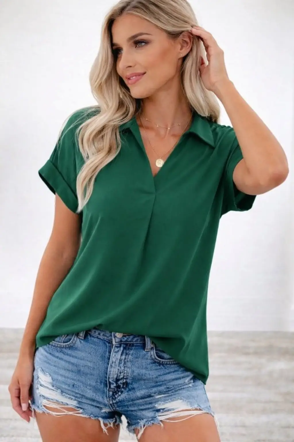 Kadın Kısa Kollu Yakalı Dokuma Viskon Bluz