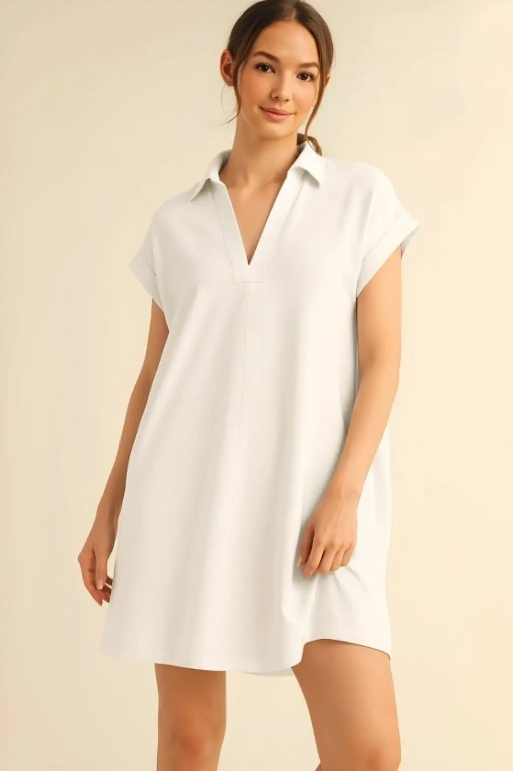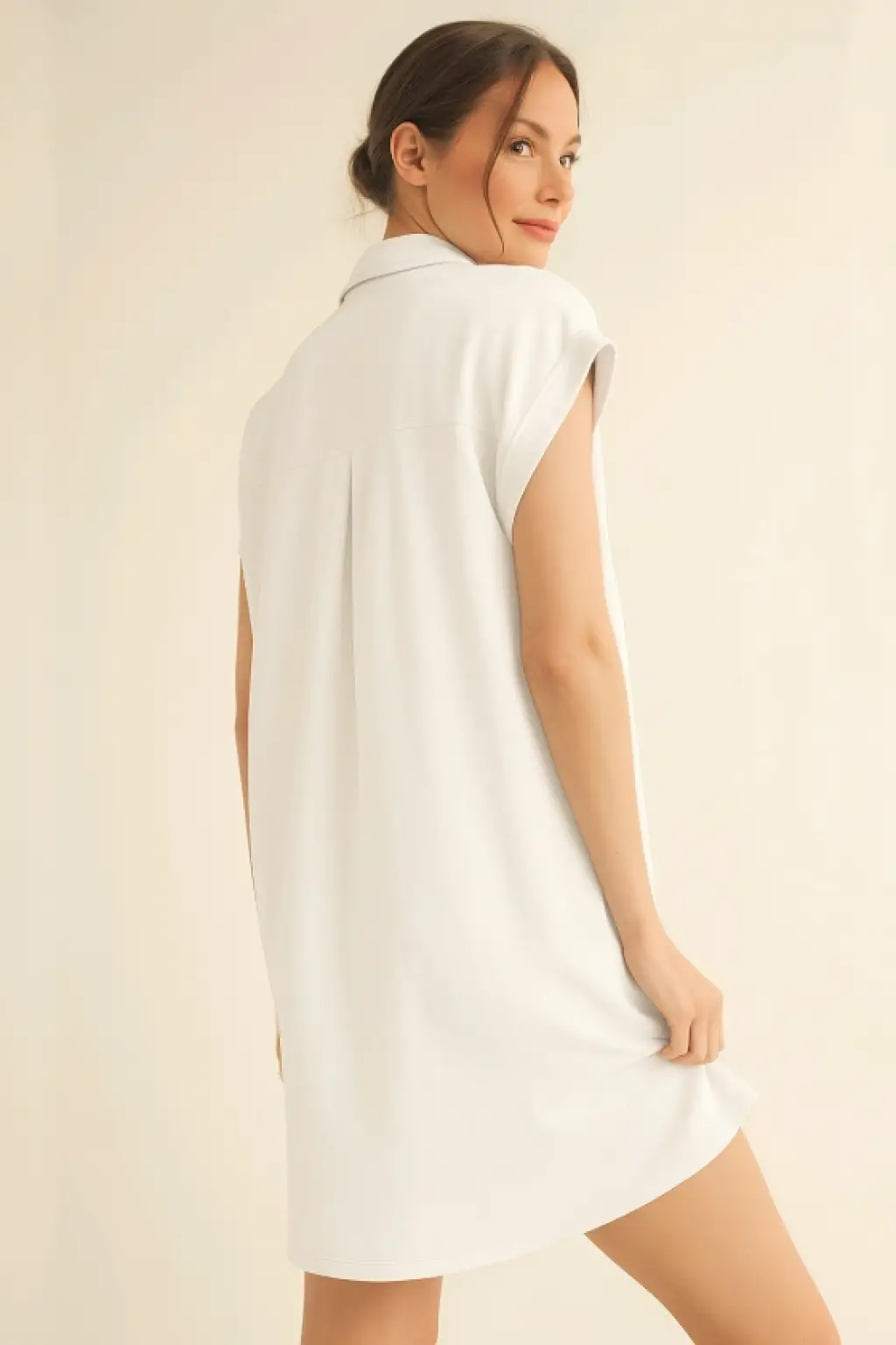 Gömlek Yaka Cepli Süprem Penye Elbise -Beyaz