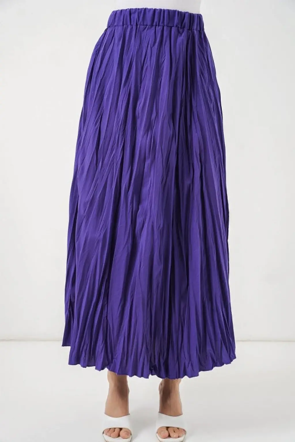 Uzun Kırışık Etek 8042 - Mor