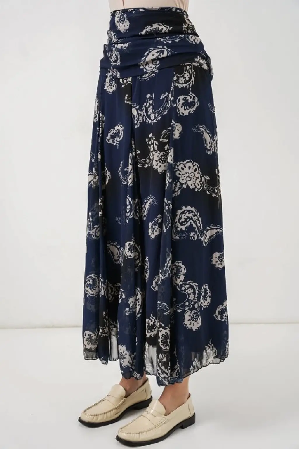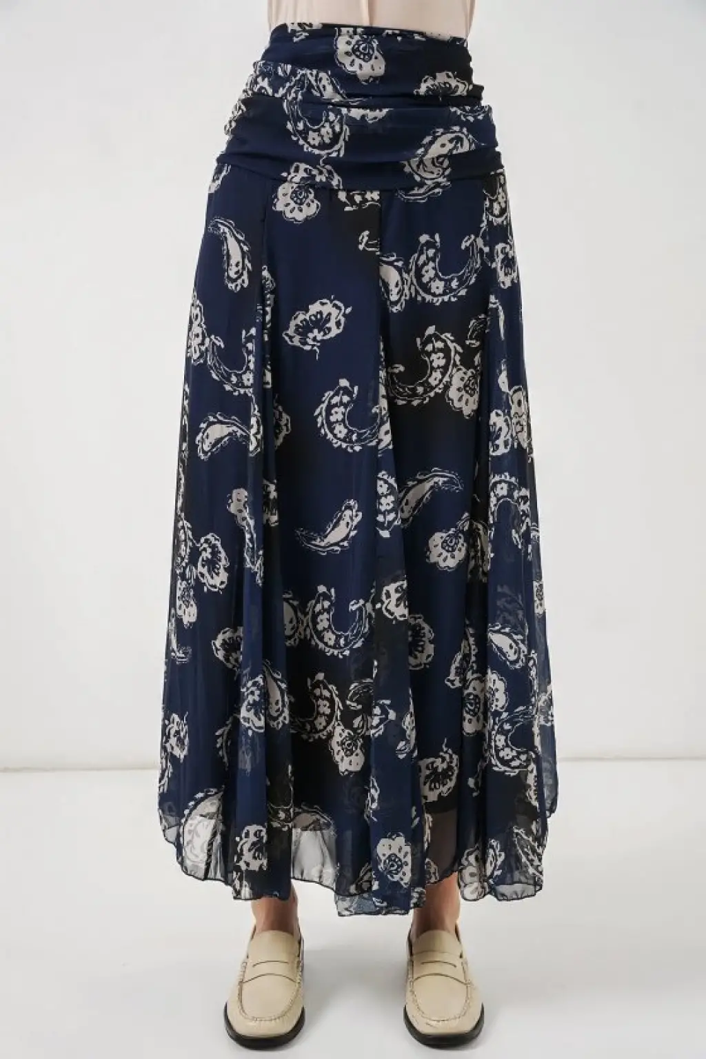Desenli Şifon Etek 8057 - Lacivert
