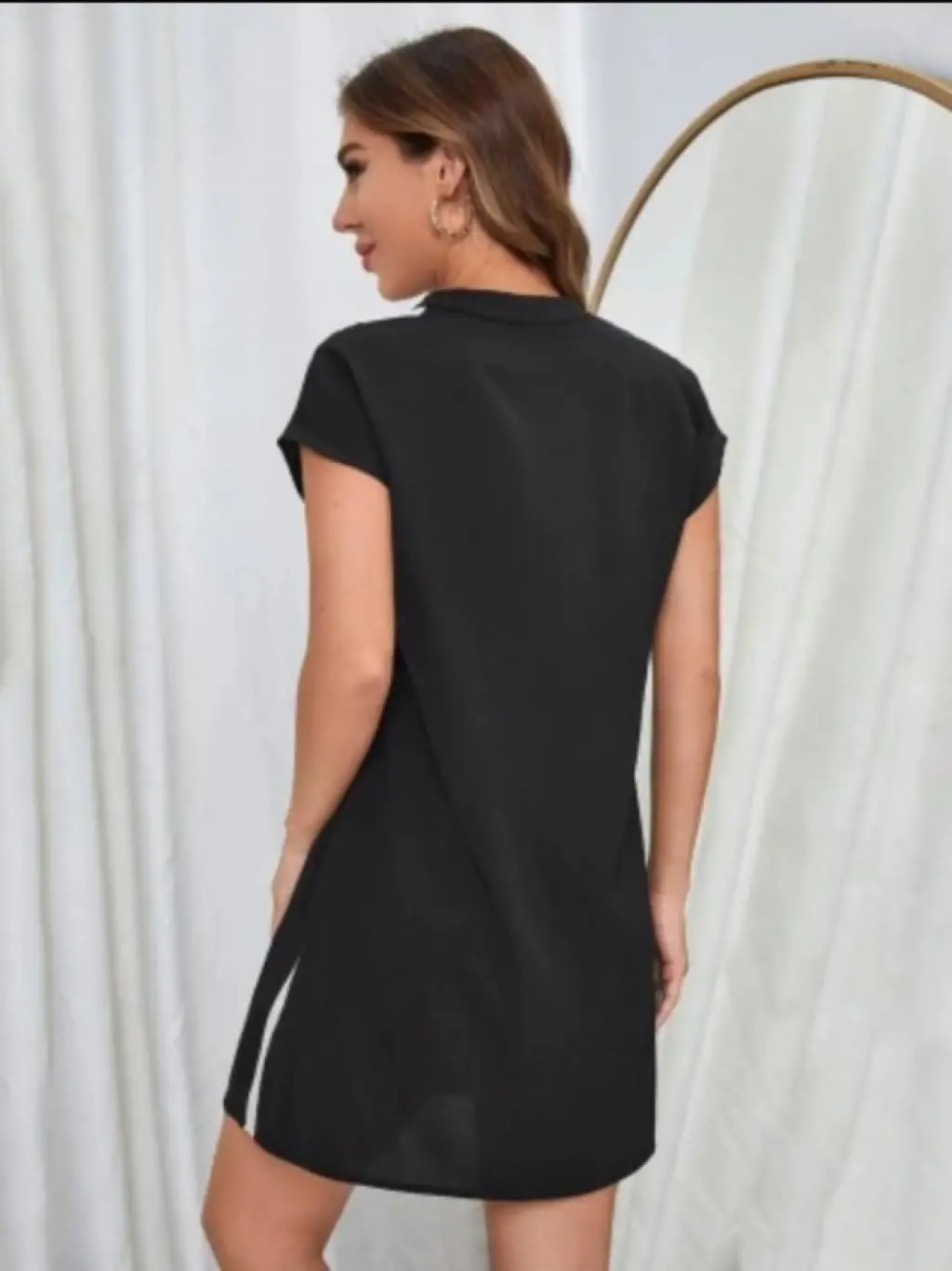 Kadın Kısa Kollu Bisiklet Yaka Gold Düğme Detay Midi Boy Elbise
