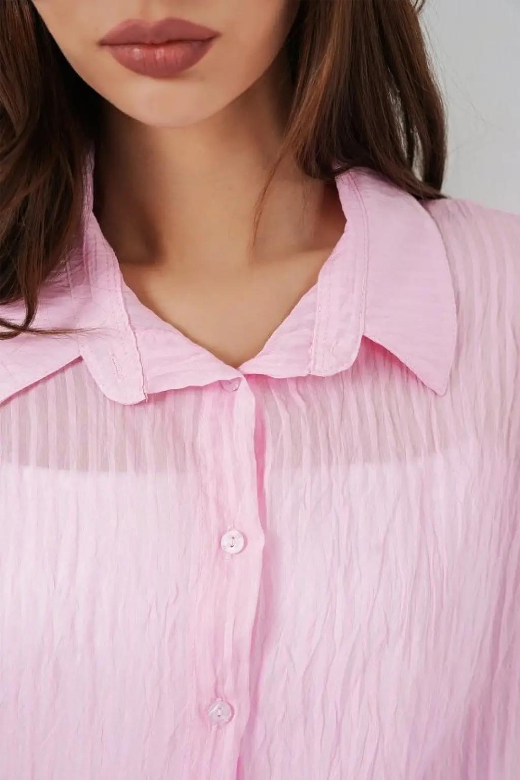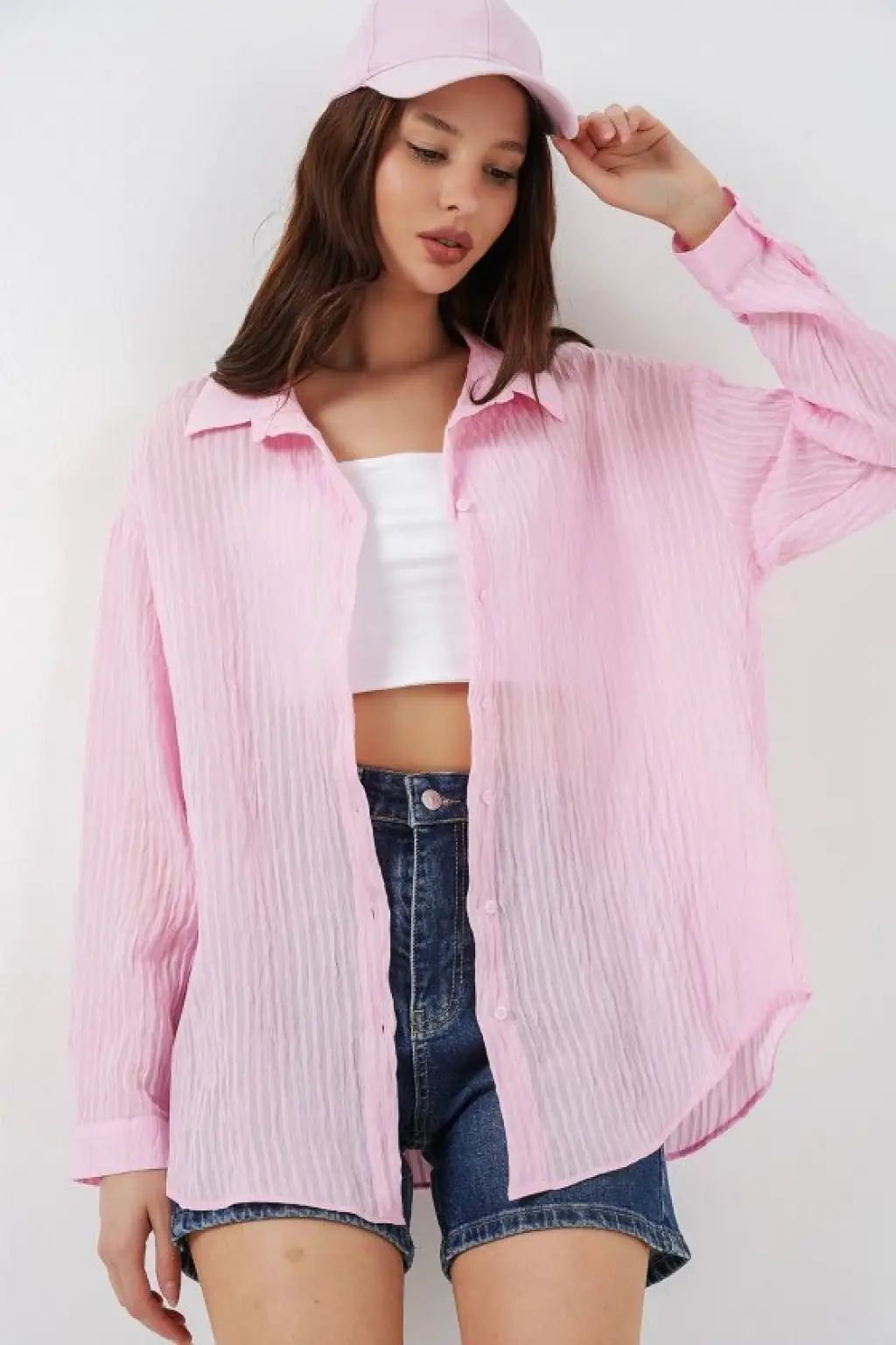 Uzun Oversize Gömlek 20320 - Pudra