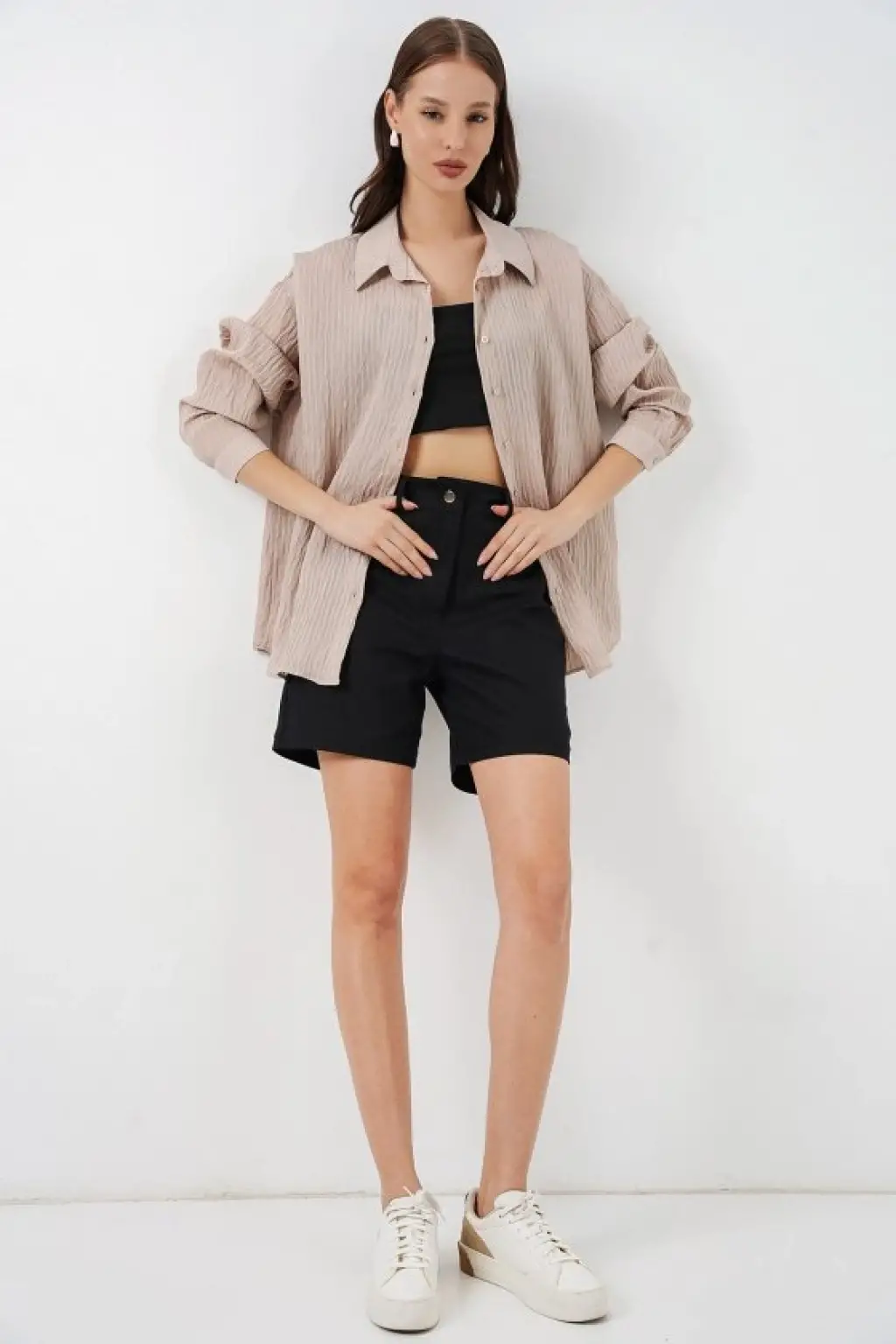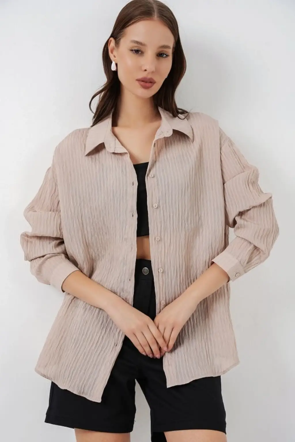 Uzun Oversize Gömlek 20320 - Bej