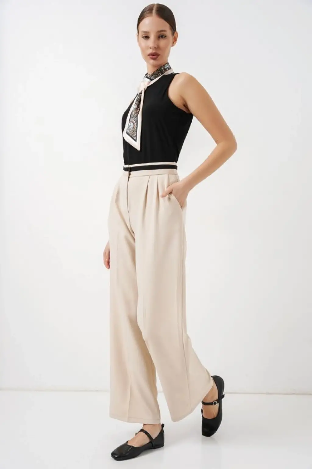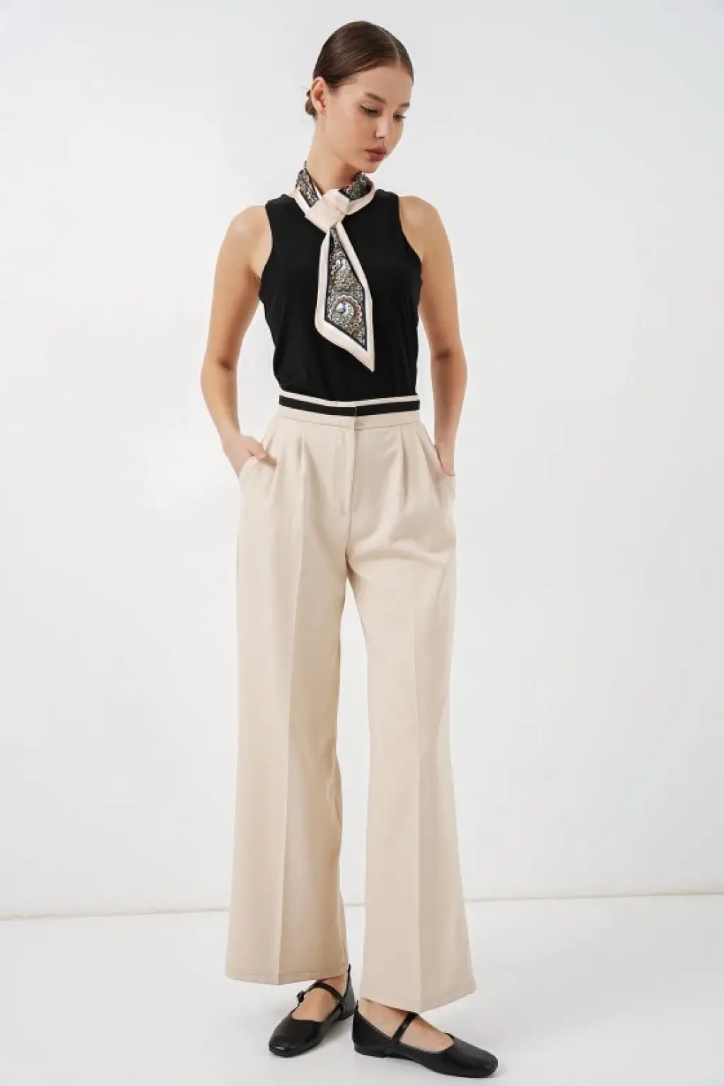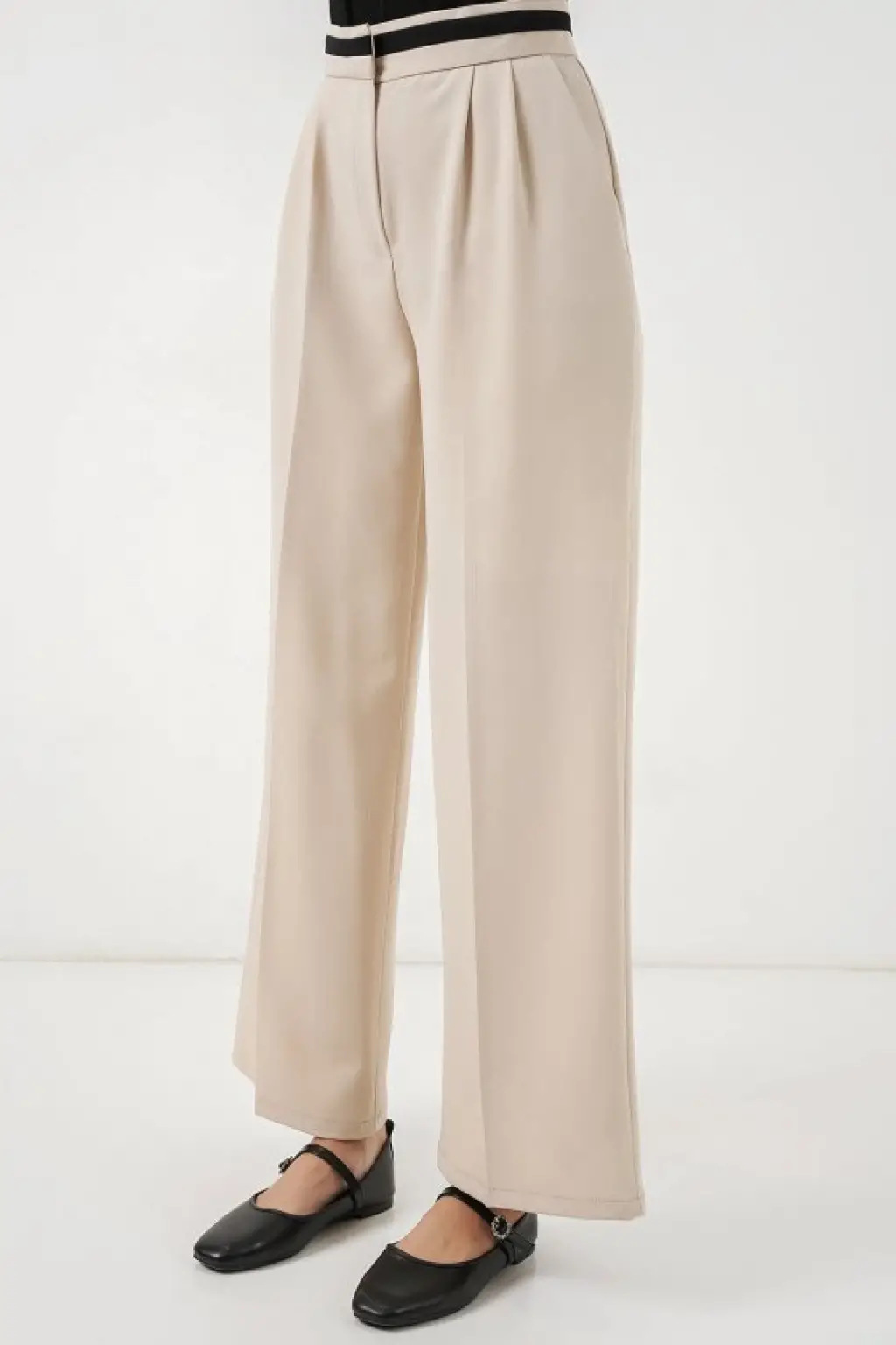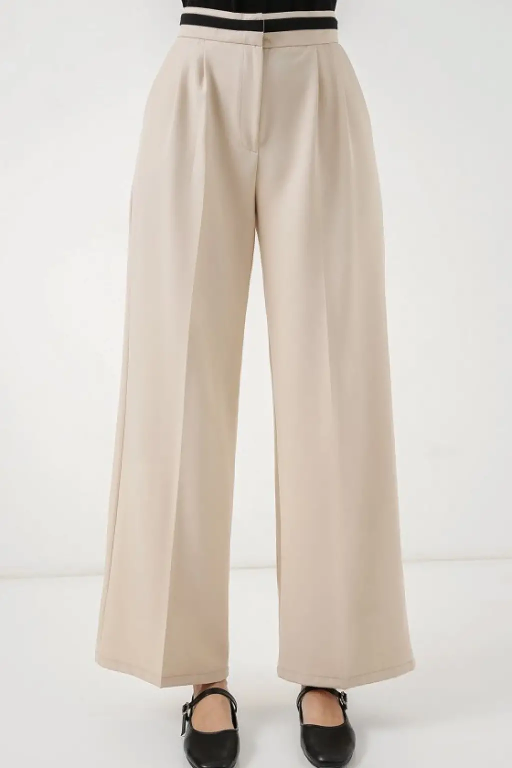 Geniş Paça Kumaş Pantolon 30088 - Krem