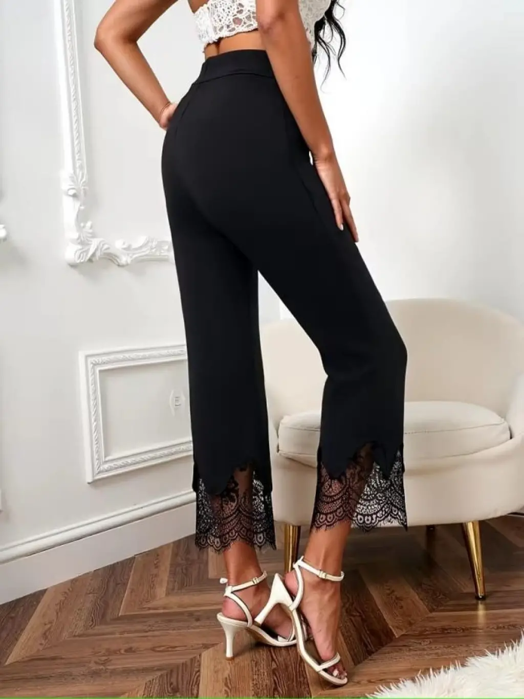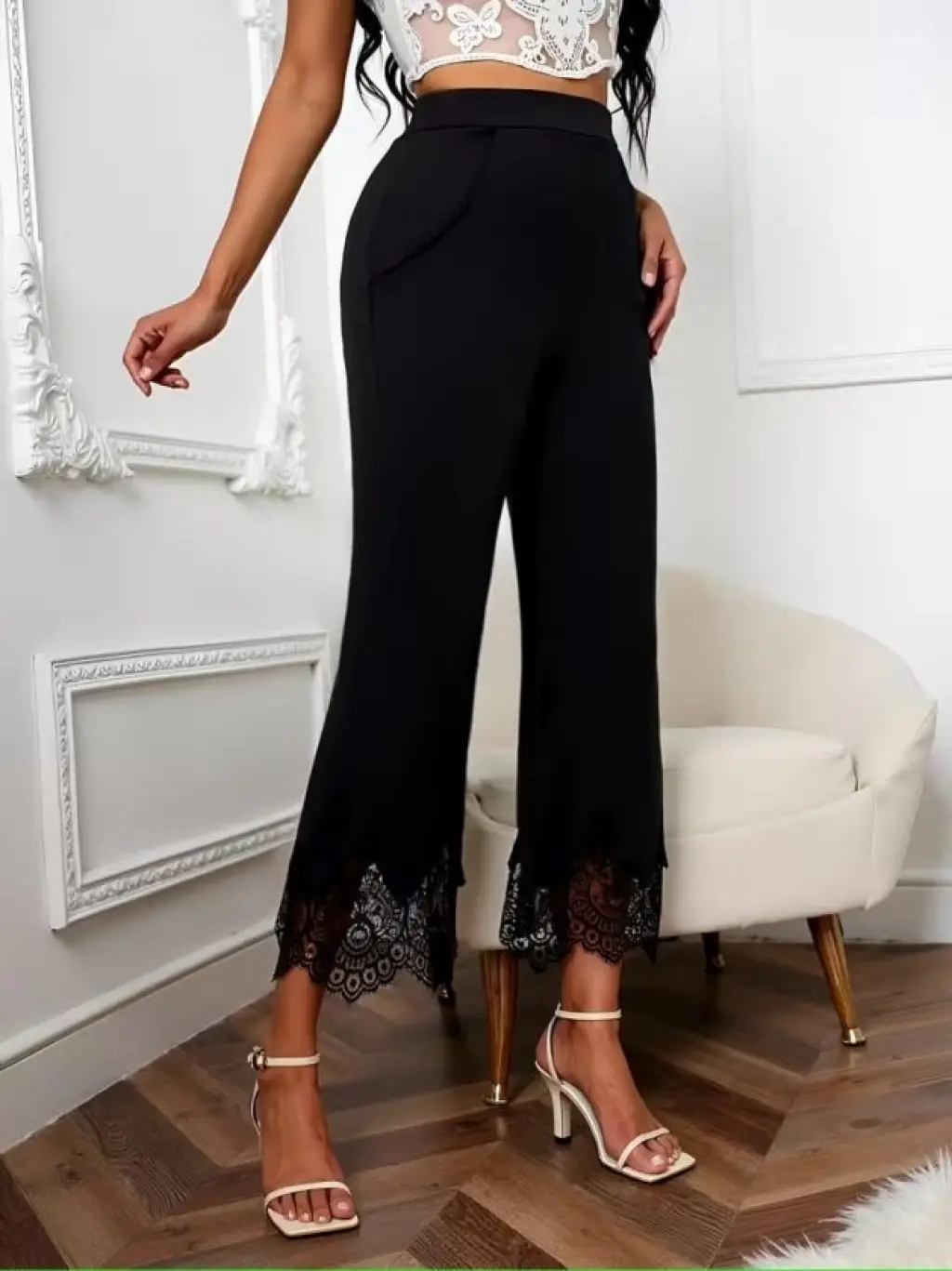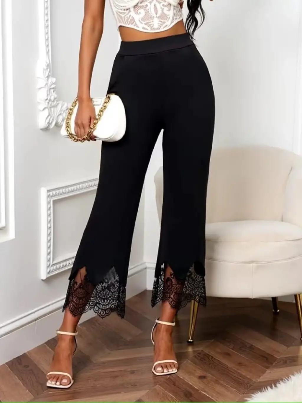 Kadın Yüksel Bel Paça Ağzı Dantelli Dalgıç Pantolon