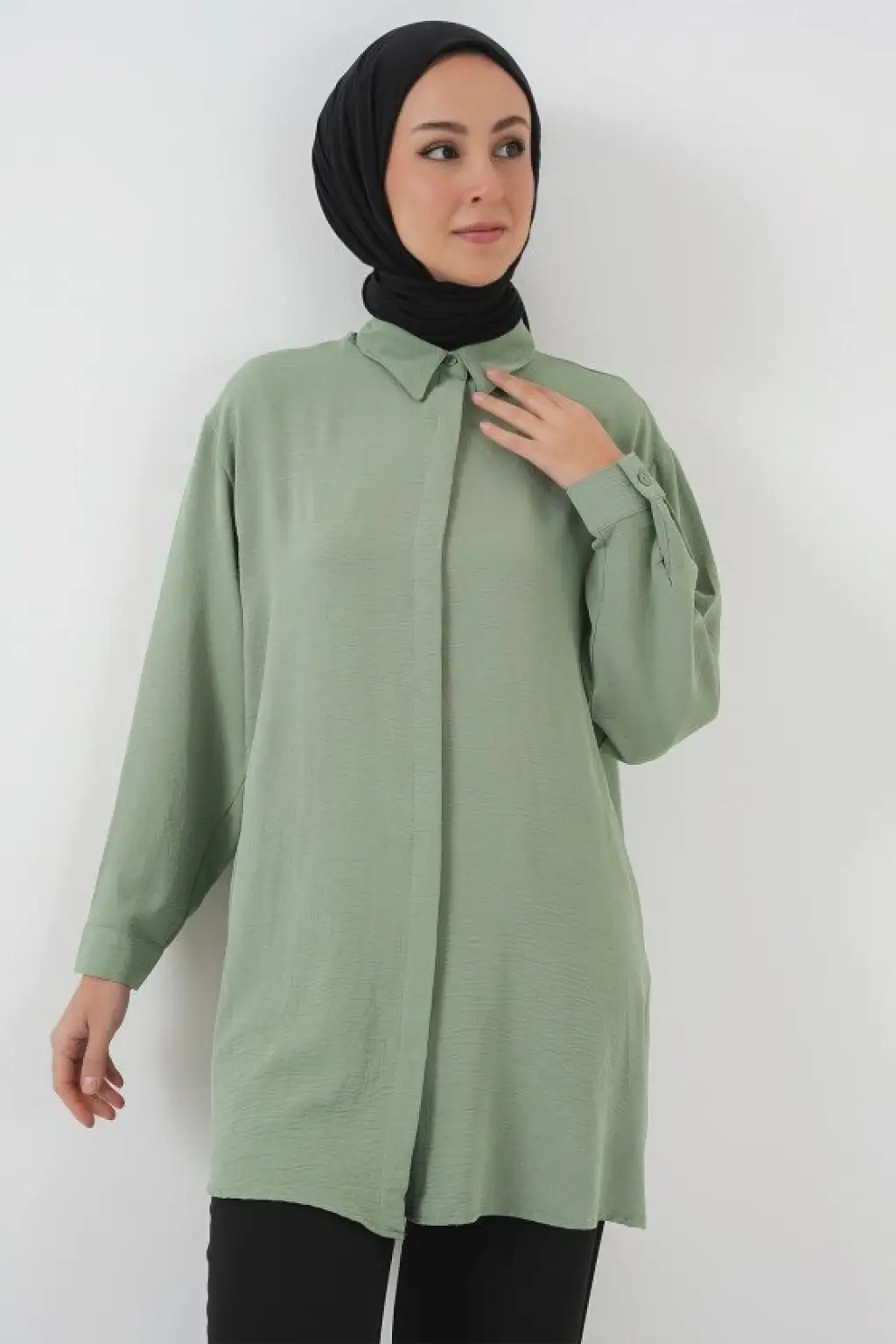 KADIN Yarım Fermuarlı Triko Kazak – Selanik Örgü, Dik Yaka, Pamuklu Dokuma, Oversize Uzun Kollu Kışlık Model - Mint Yeşili