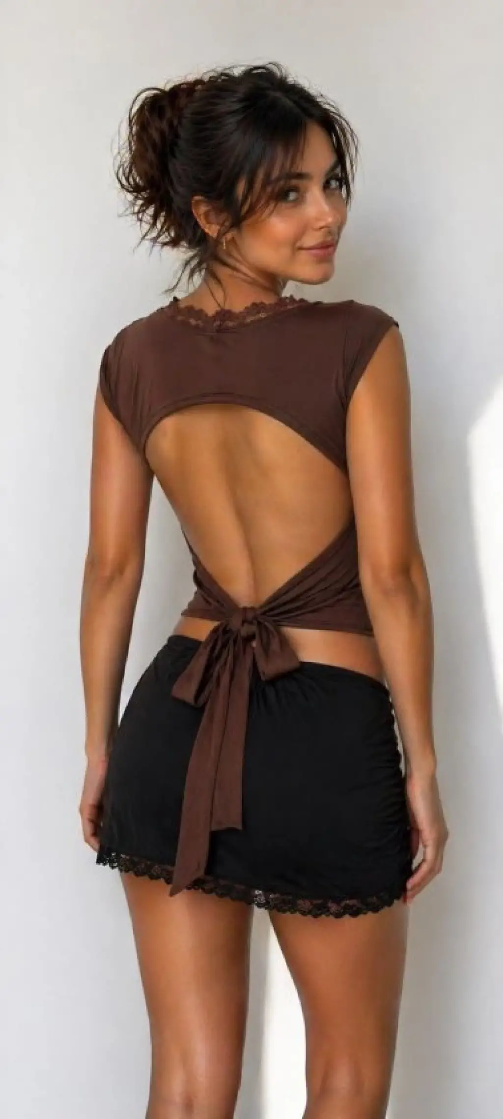 Kadın ön Arka Dantel Detay Kuşaklı Bluz