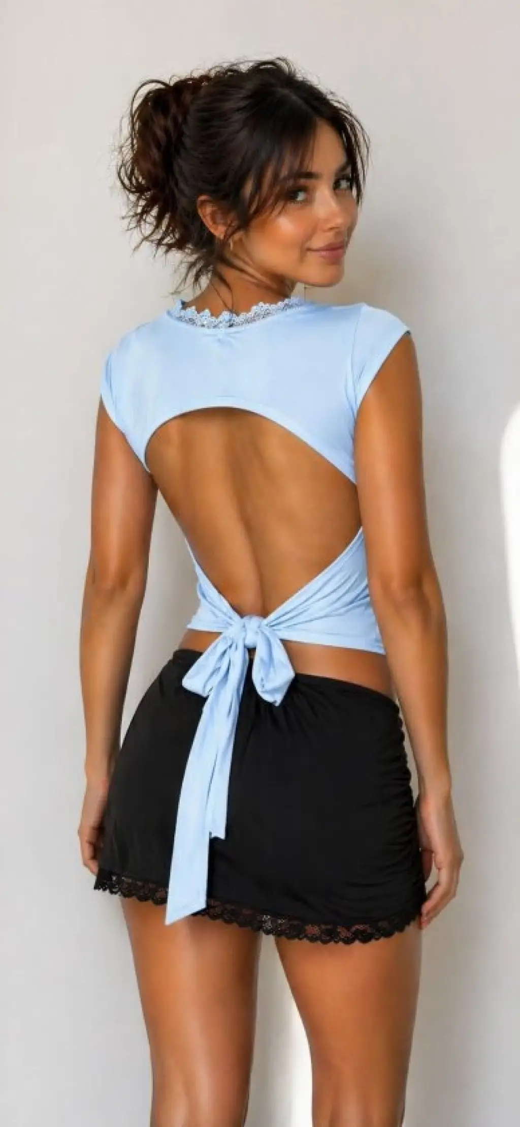 Kadın ön Arka Dantel Detay Kuşaklı Bluz