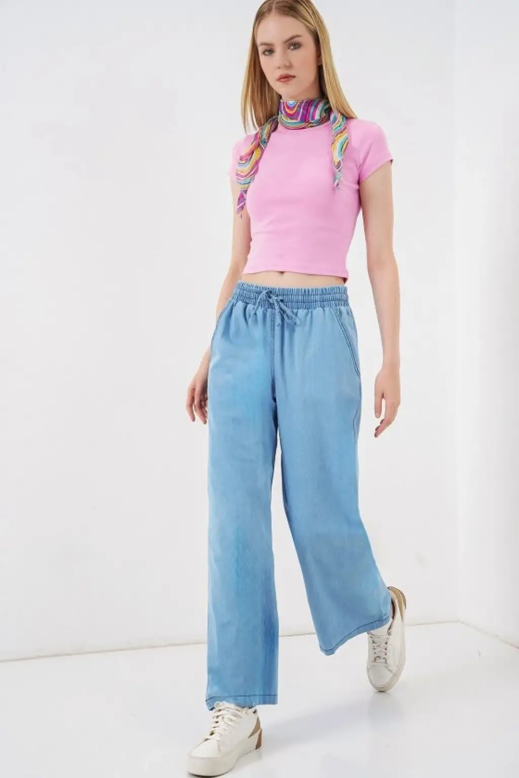 Tünel Bağcıklı Beli Lastikli Pantolonlu Pamuklu Krinkıl Takım -Laci