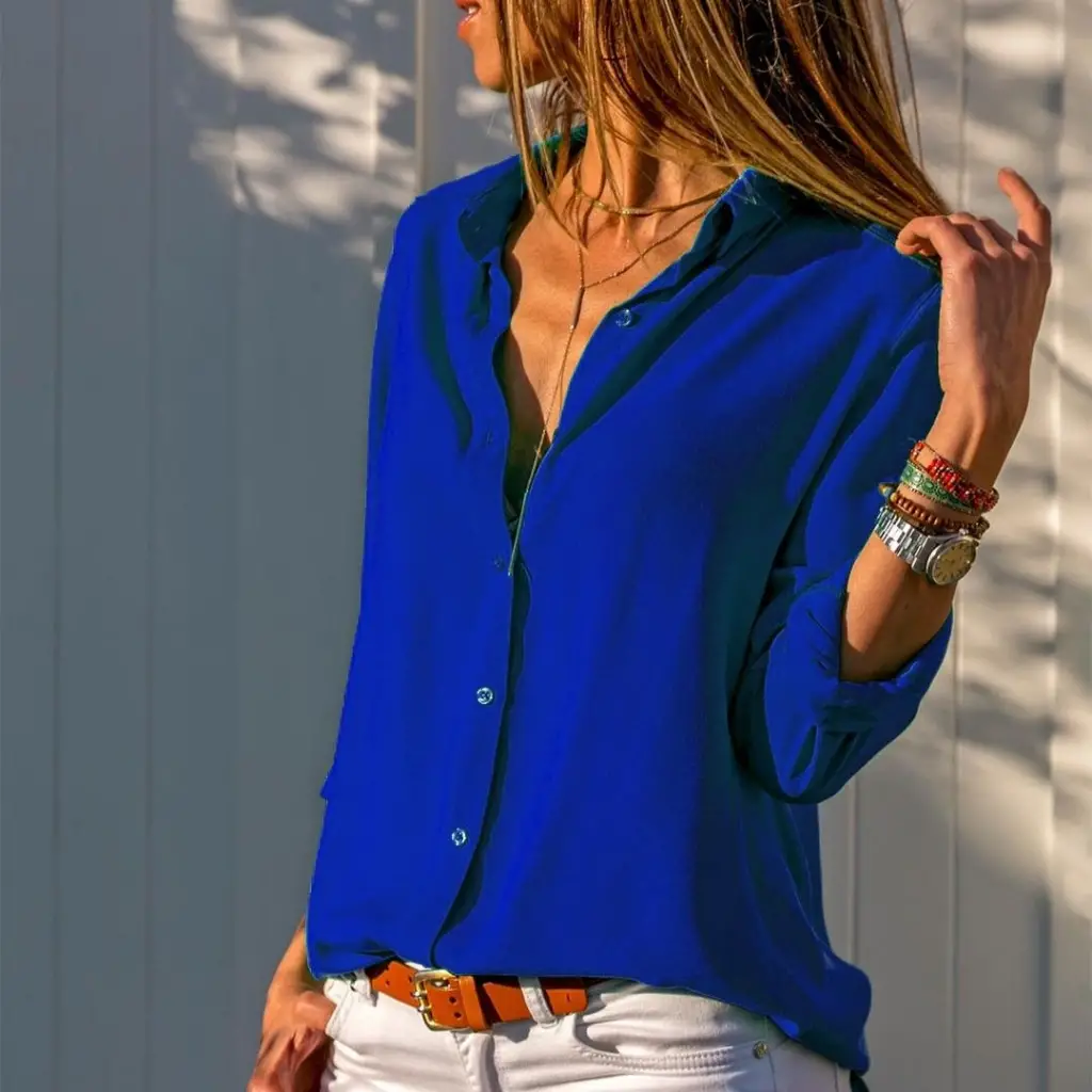 3900 Oversize Uzun Basic Gömlek - E. Mavi