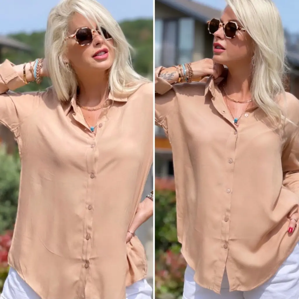 Kadın Uzun Kollu Salaş Gömlek Ve şort Keten Ikili Takım