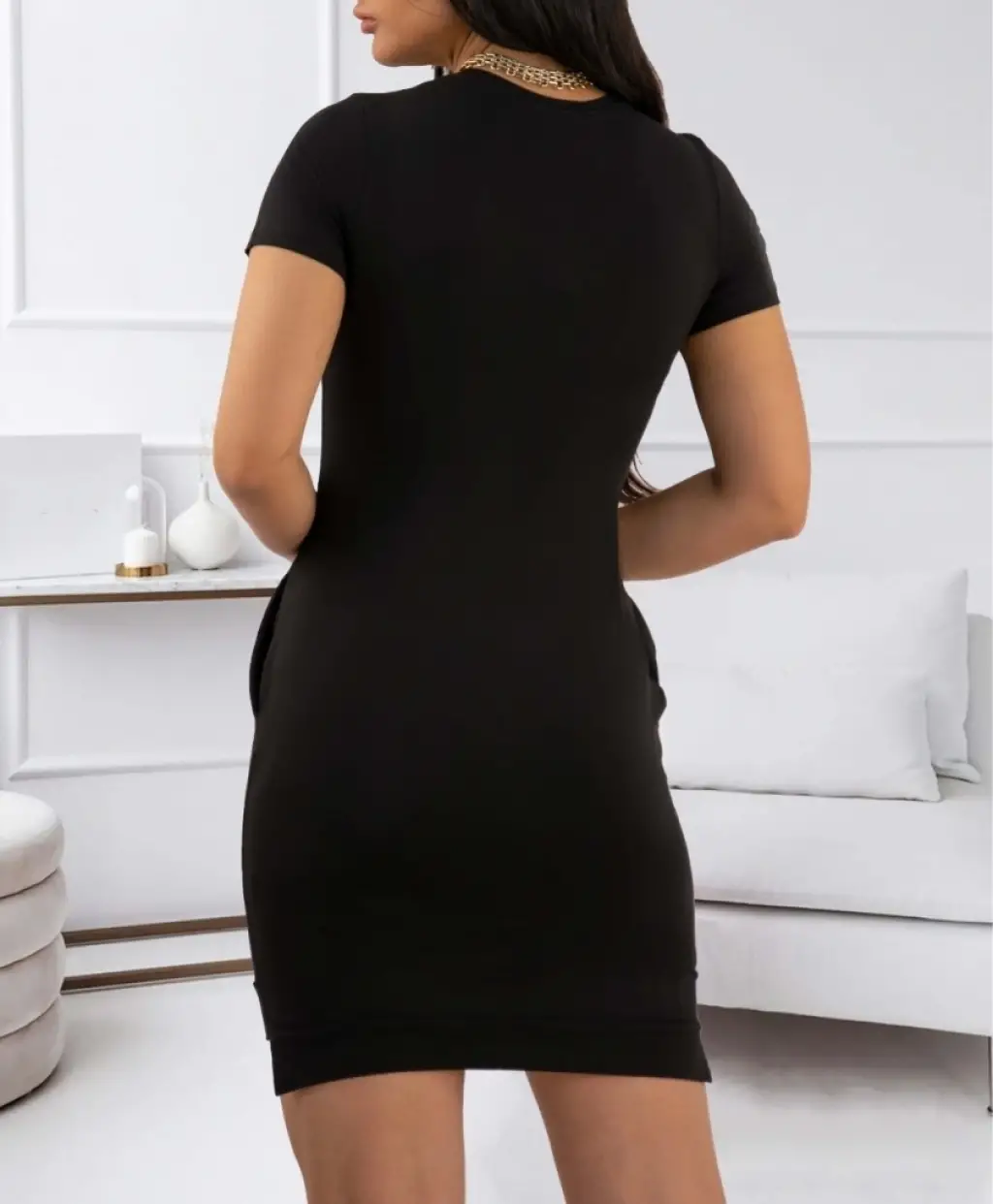 Kadın Kısa Kollu Madonna Yaka önü Kısa Arkası Uzun Ithal Krep Elbise