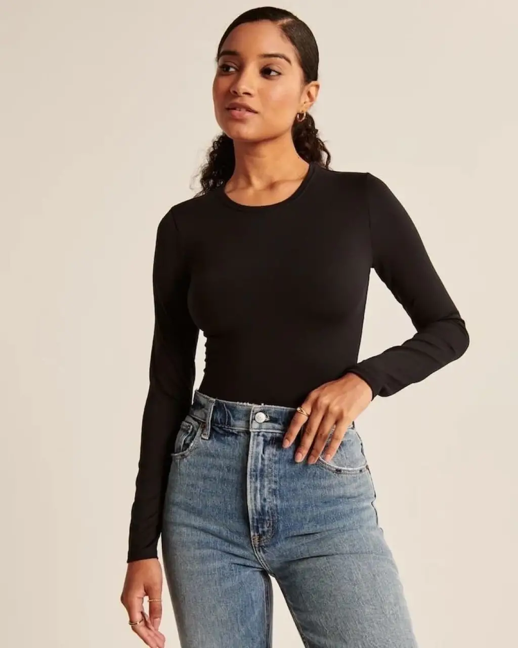 Kadın Uzun Kollu Derin Yuvarlak Yaka Kaşkorse Bluz