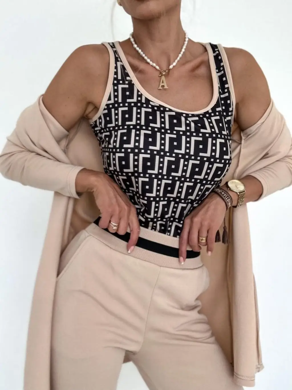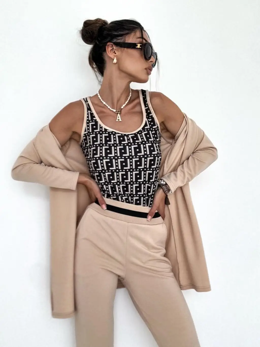 Kadın Uzun Kollu Nope Baskılı Beli Ribanalı Ikili Takım