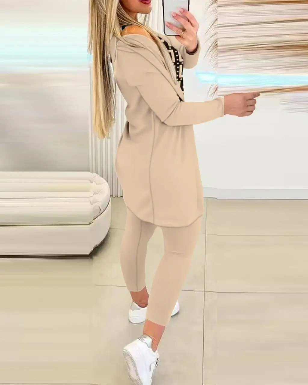 Bağcıklı Tunik Pantolon İkili Takım 6752 - Pudra