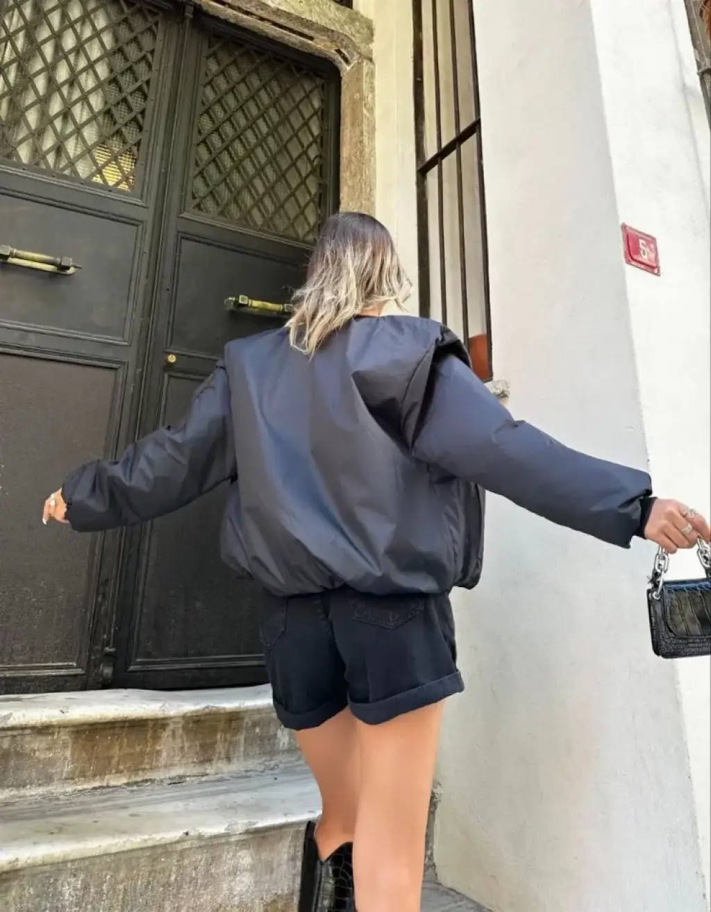 Omarı Şık Siyah Oversize Kolej Ceket