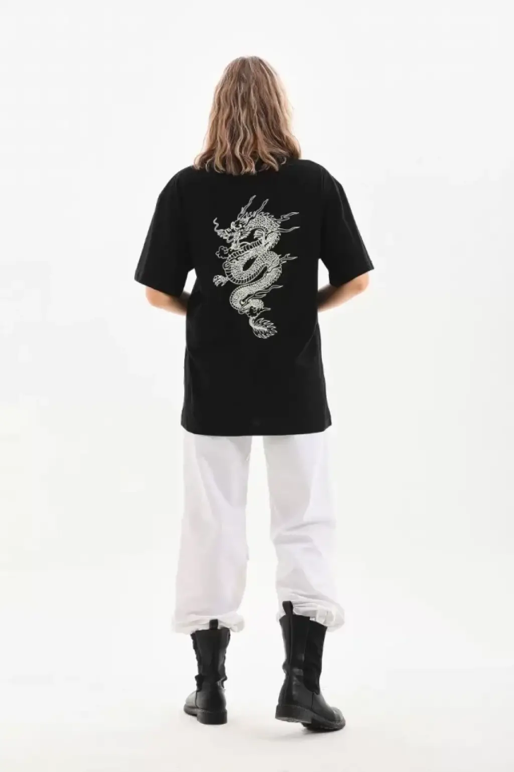 Unisex Baskılı Oversize T-Shirt - Siyah