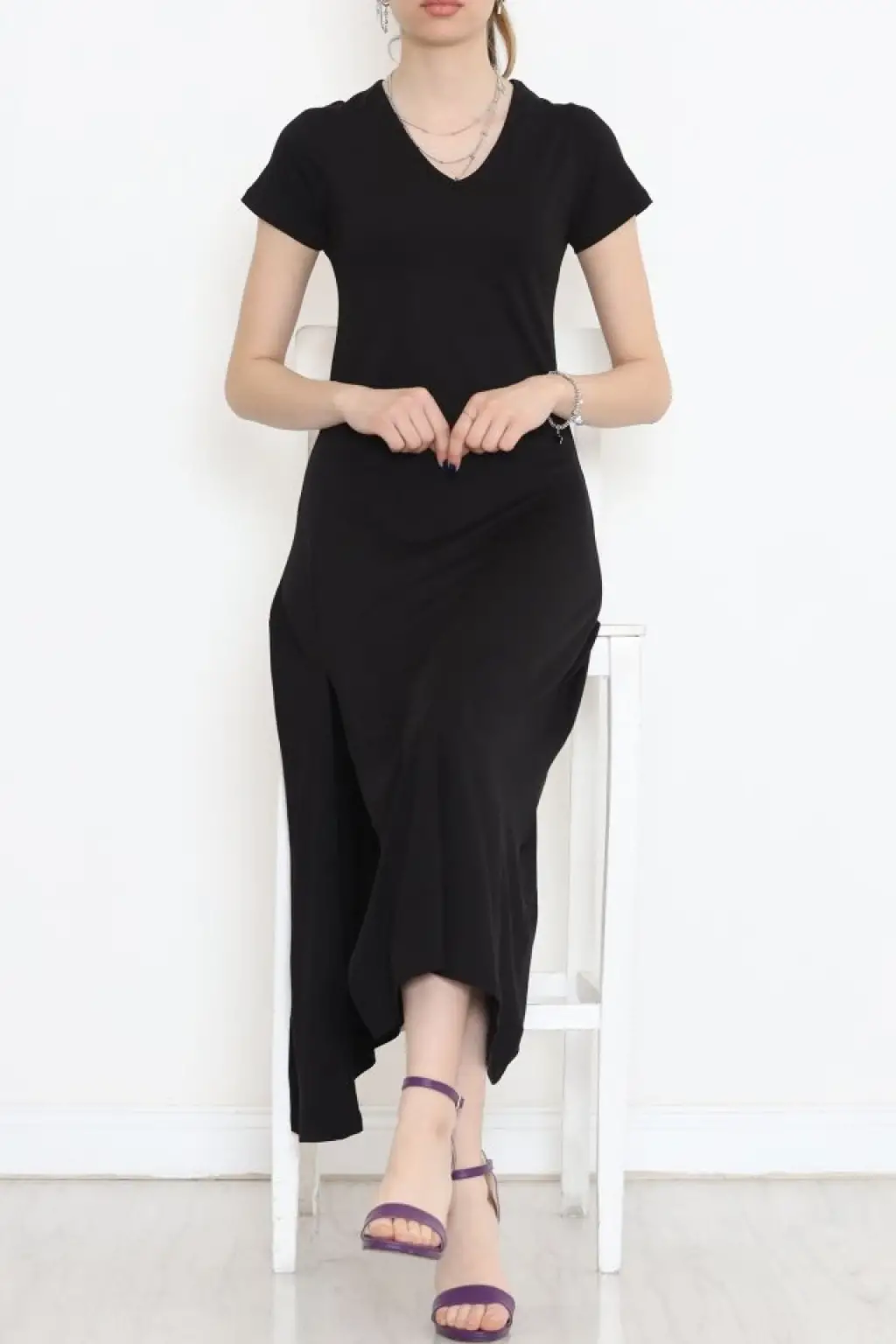 Kadın Truvakar Kollu V Yakalı Yırtmaçlı Uzun Aerobin Elbise