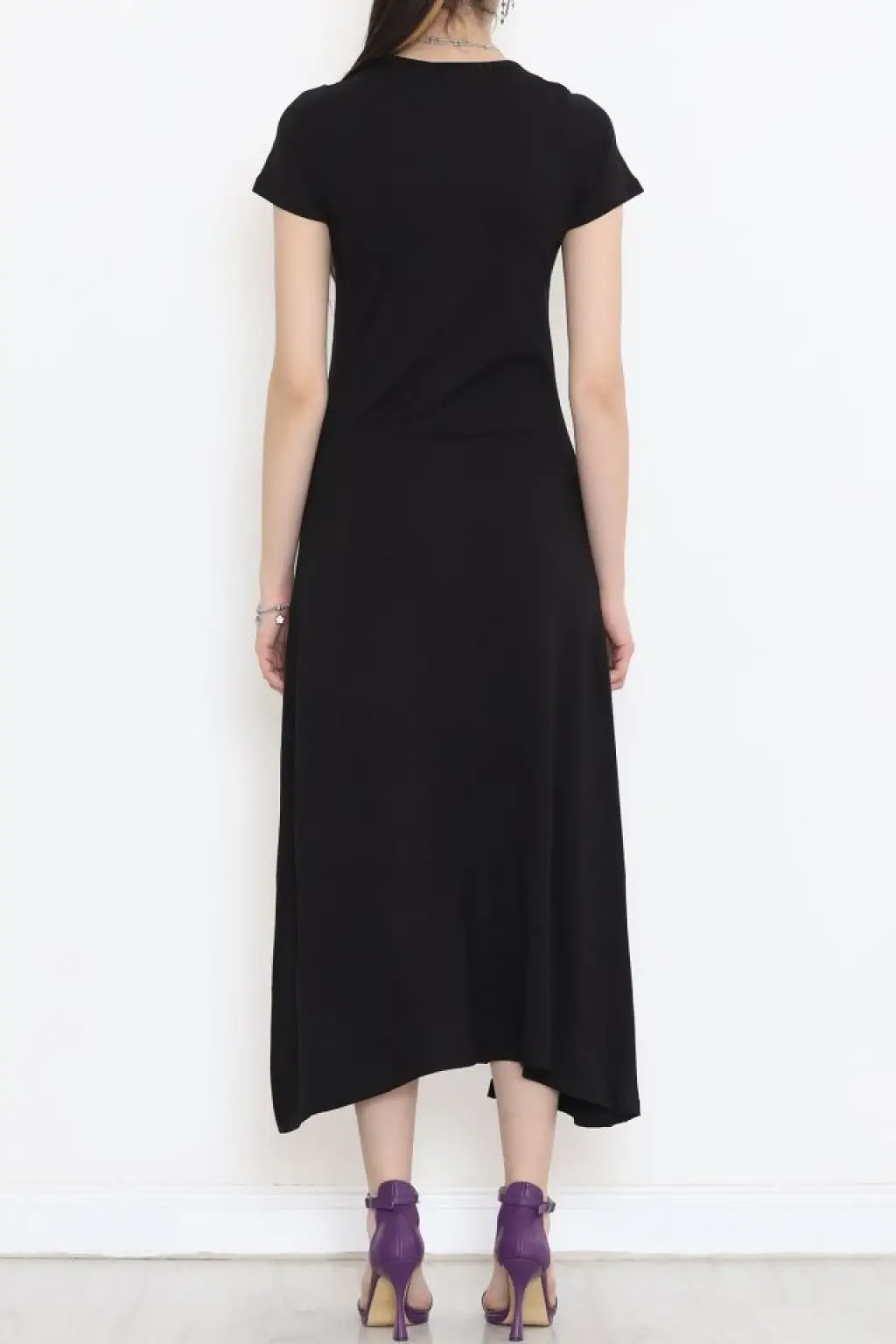Kadın Kısa Kollu Madonna Yaka önü Kısa Arkası Uzun Ithal Krep Elbise
