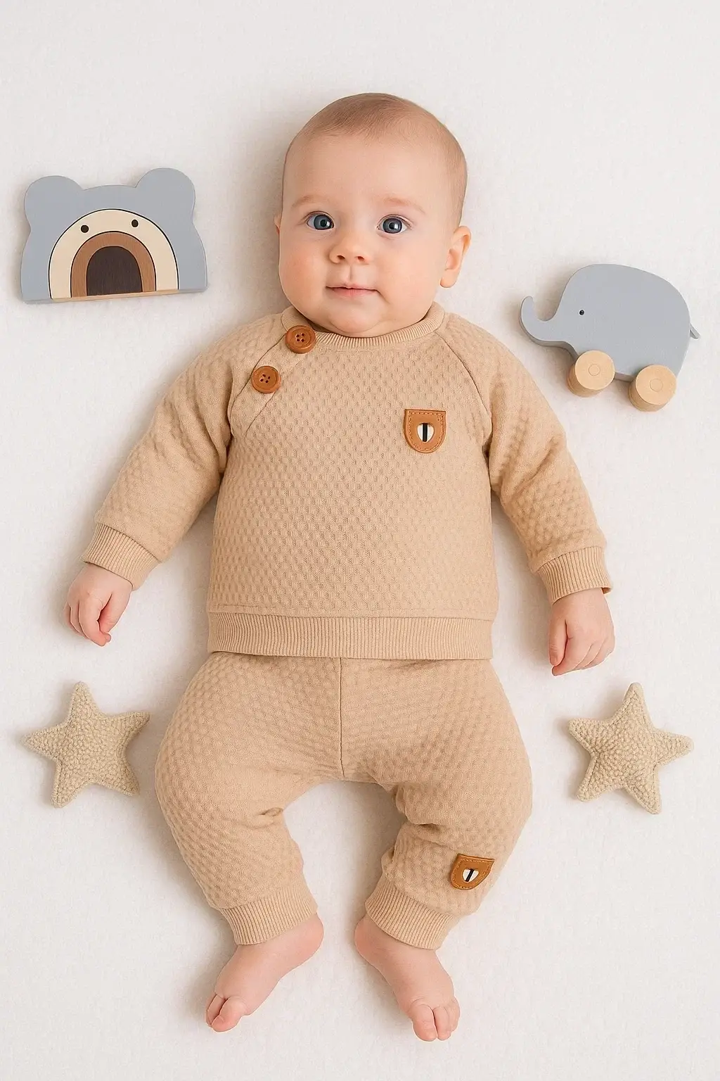 Jakarlı Omuzdan Düğmeli 2'li Erkek Bebek Takımı